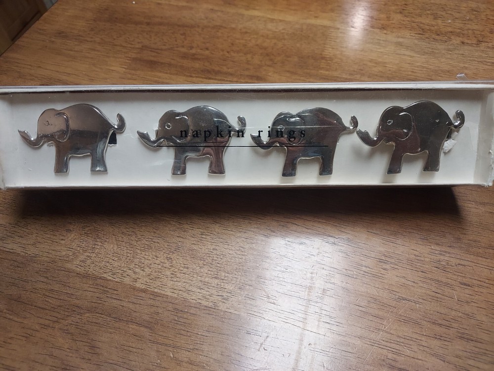 Pier 1 Imports Four Nickel Plated Elephant Design Napkin Rings. Condition is Pre-owned. Shipped with USPS Ground Advantage....