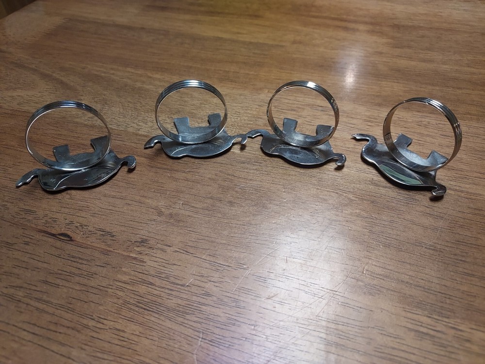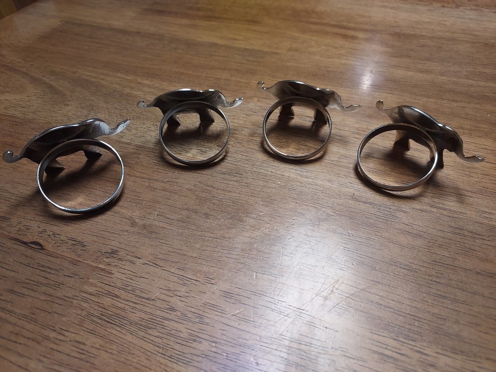 Pier 1 Imports Four Nickel Plated Elephant Design Napkin Rings. Condition is Pre-owned. Shipped with USPS Ground Advantage.
