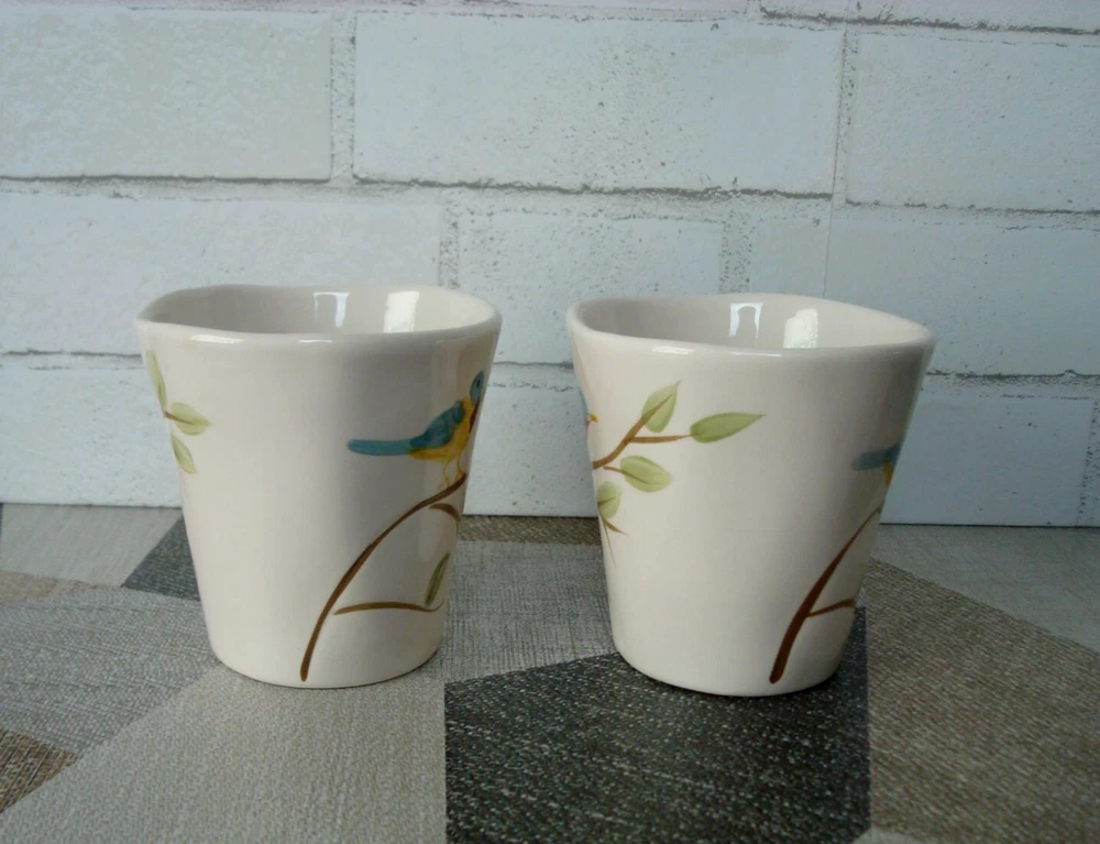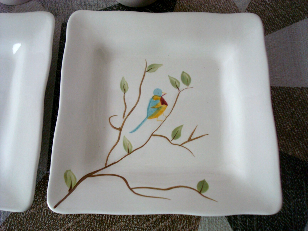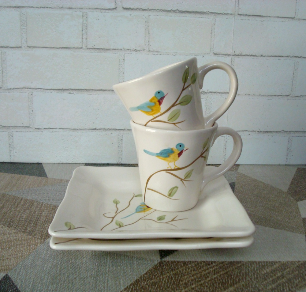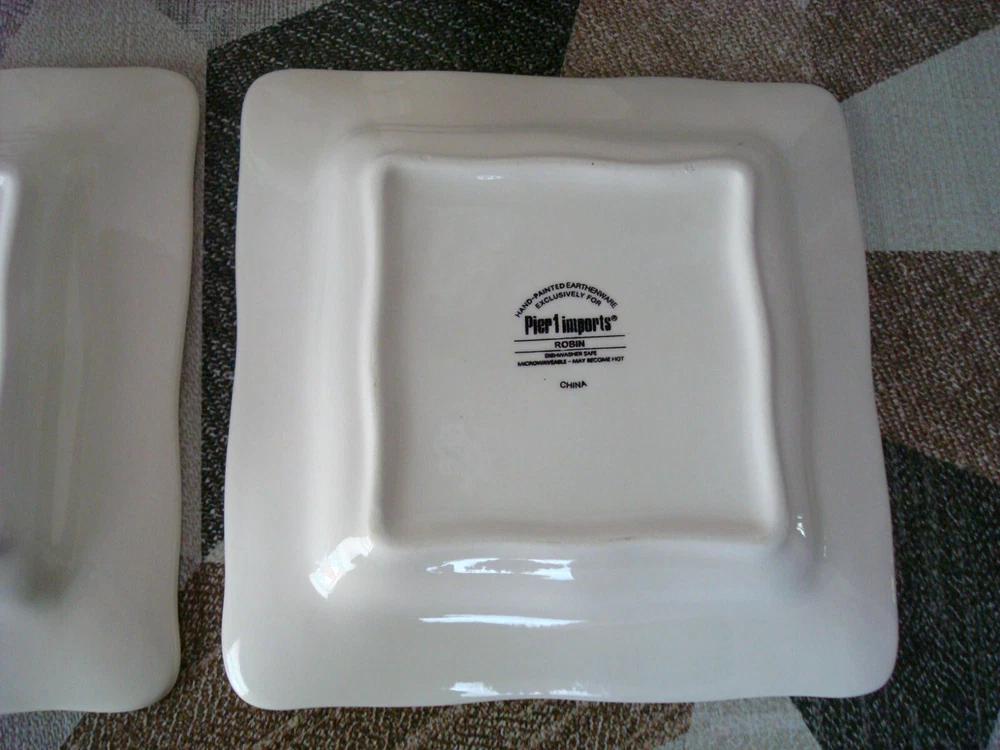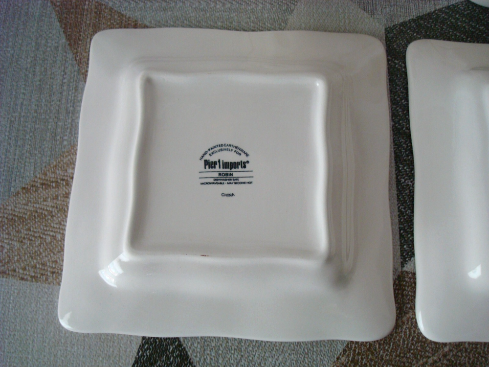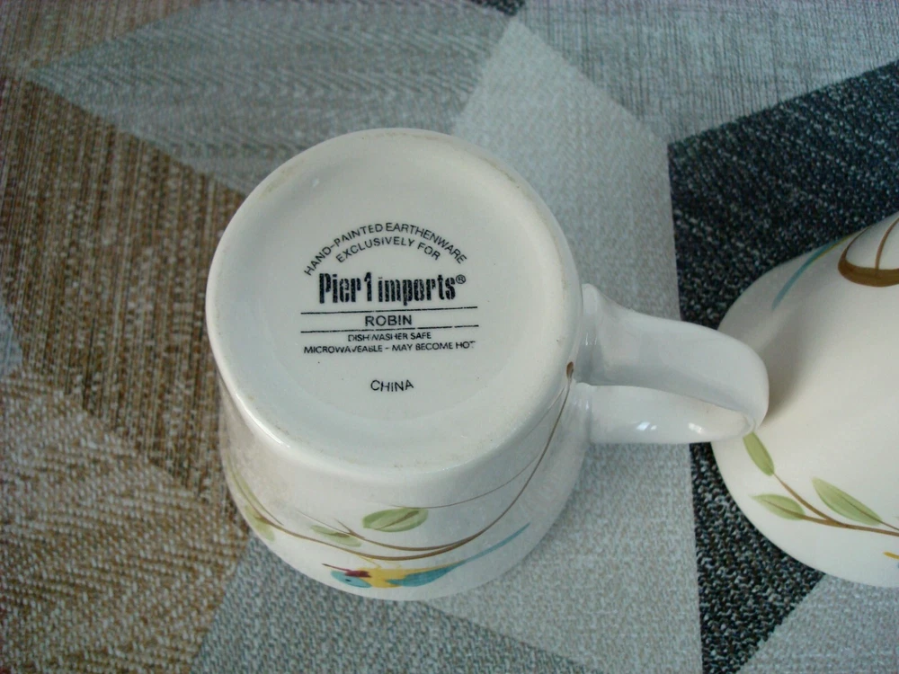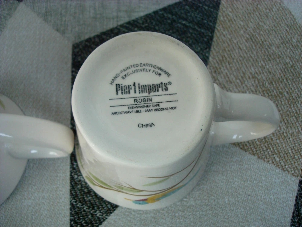 Pier 1 Imports Four-Piece 2 Mug 2 Plate Hand Painted Earthenware Robin on Branch are in excellent pre-owned condition without any chips, cracks or marks. The mugs and plates maybe unused, only one mug has the backstamp a little faded. I am selling the four-piece as pre-owned because I took from all 4 the price tag of the bottom with the intension to keep them but changed my mine later. A picture is worth a thousand words, kindly view all photos for to make your own assessment and then ask any questions you may have. Pictures are a part of the description. Please note color of the photo might a little different from actual color of the item due to color display of different monitors. All measurements are approximately measurements. From a clean and smoke free home. I will ship the item out immediately after payment is received. Feedback is left when feedback is received. Thank you for your consideration and interest. Buyers are responsible for paying return shipping charges in event of a return. All returning items must be shipped in original condition that you received the item, including original shipping box carefully wrapped with original packing materials and shipped with original shipping method for a full refund of the item.