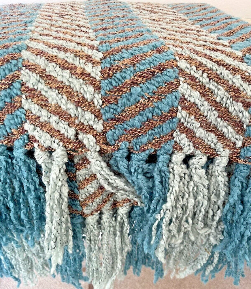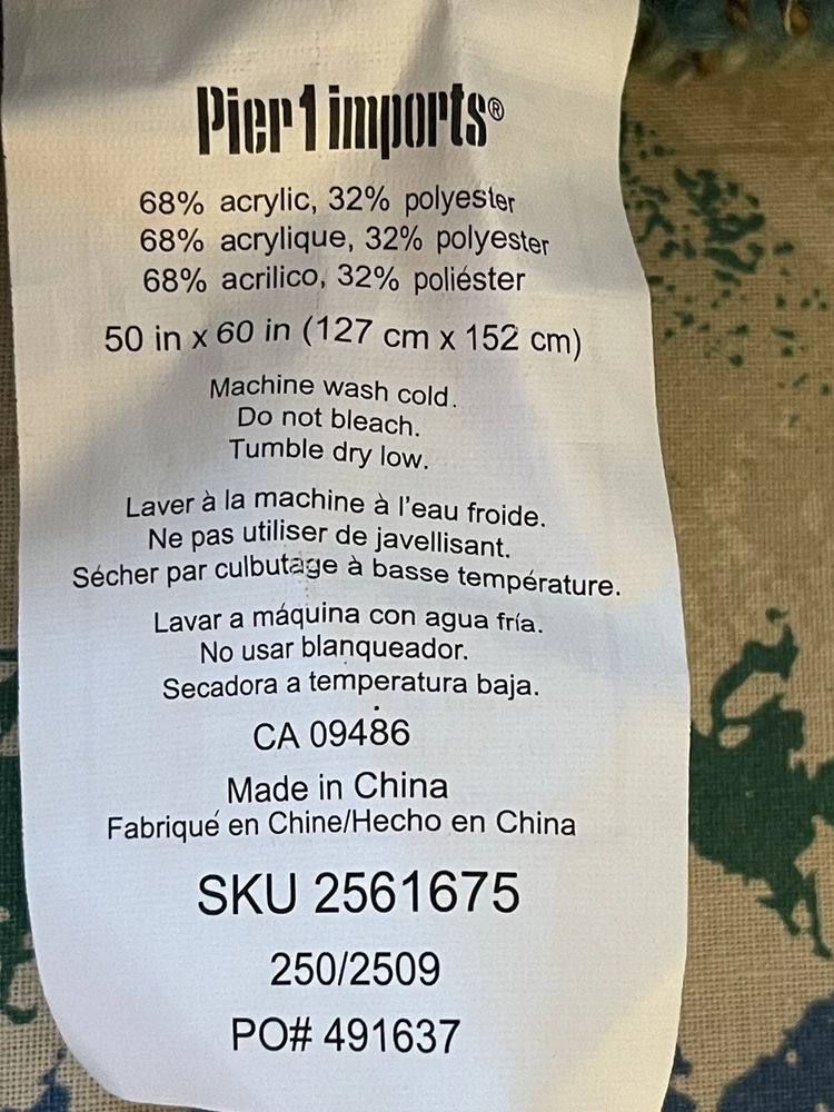beautiful Pier 1 Imports throw blanket. Measuring 50" x 60", it's the perfect size for snuggling up on chilly nights. Used but in Good Condition. The very vibrant zig-zag design in multicolor adds a unique touch to any decor, while the material made of polyester and acrylic ensures both softness and durability. Machine washable for easy care, this rectangular throw blanket is suitable for teens, adults, and kids alike. USPS SHIP.