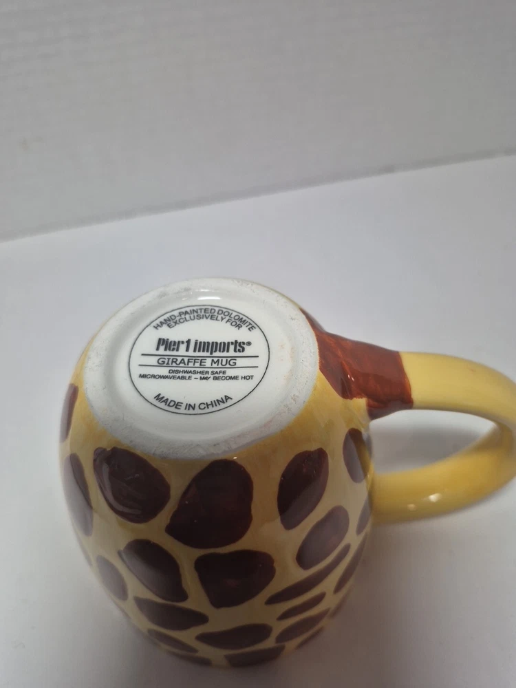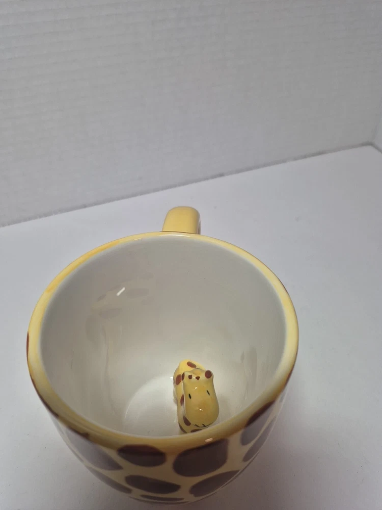 Add some surprise to your mug collection with this Pier 1 Imports Giraffe Surprise Mug. The outside features a painted animal print design of a giraffe, making it perfect for kids or adults who love animals. The mug has a capacity of 6 oz. and is made of ceramic & porcelain material. No Chips Or cracks.