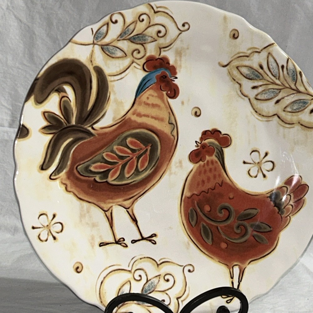 Pier 1 Imports Gallo 2 Rooster & Leaves Dinner Plate 11” Diameter Replacement Dinner Plate...