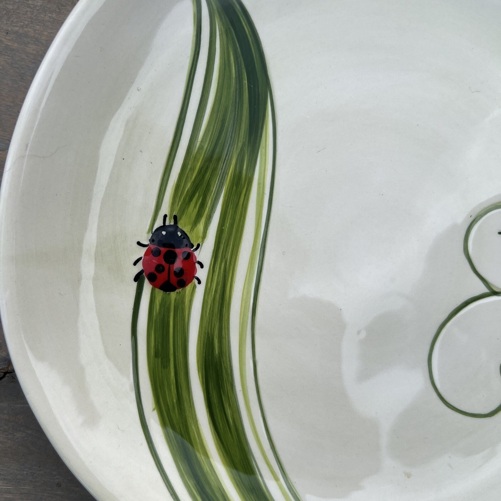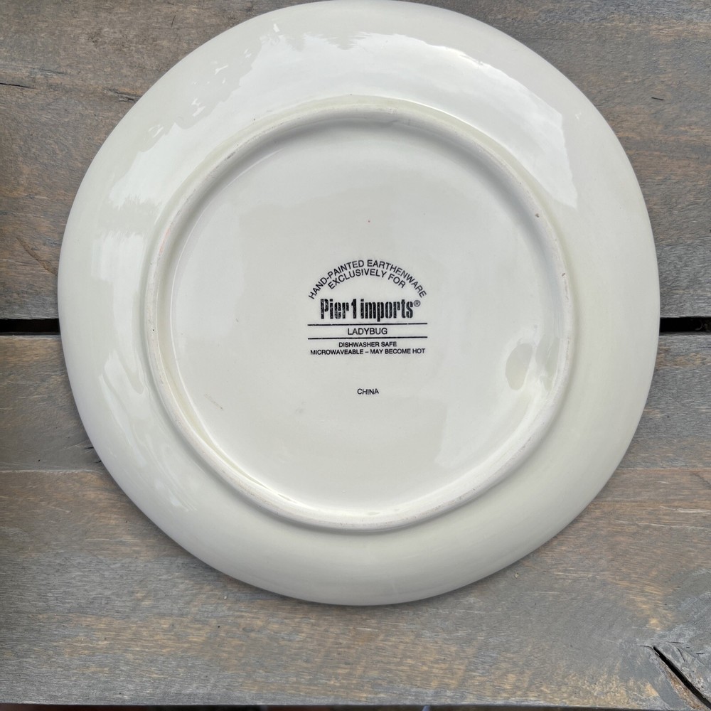 Pier 1 Imports GardenLADYBUG Salad plate. Hand painted earthenware. 8.5 Inches. This is a really nice salad plate that pier one import collectors will be at the top of their list for collecting. It is hand-painted and dishwasher safe and microwavable due to its Earthenware it may become hotter than other types of serving dishes. Ladybug has a bump on the plate to give it a dimensional decoration. I pack very carefully to ensure that the item reaches its destination safely. Are use recycled packing and shipping material as much as possible. Please review the pictures carefully as this is the condition of the item for sale. Be sure to check out my other items for sale and auctions as I have a large variety of collectible and fun and useful items for sale! Thank you for visiting and have a blessed day!
