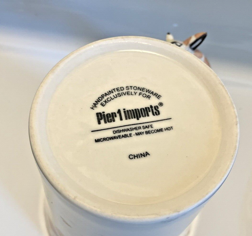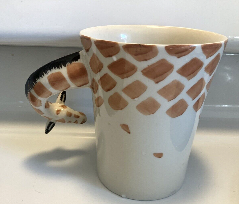 Add some wildness to your coffee time with this unique Pier 1 Imports coffee mug. Featuring a hand-painted 3D giraffe head and neck, this large ceramic mug with a capacity of 16oz is perfect for enjoying hot or cold beverages. The beige mug with an animal print pattern and abstract style is ideal for all occasions and unisex adults. Care Instructions: Machine washable up to 85°F. This original and licensed reproduction mug is a perfect addition to your collection or as a gift for someone special. The mug is manufactured in China and weighs around 1lb. Get this amazing piece before it's gone!