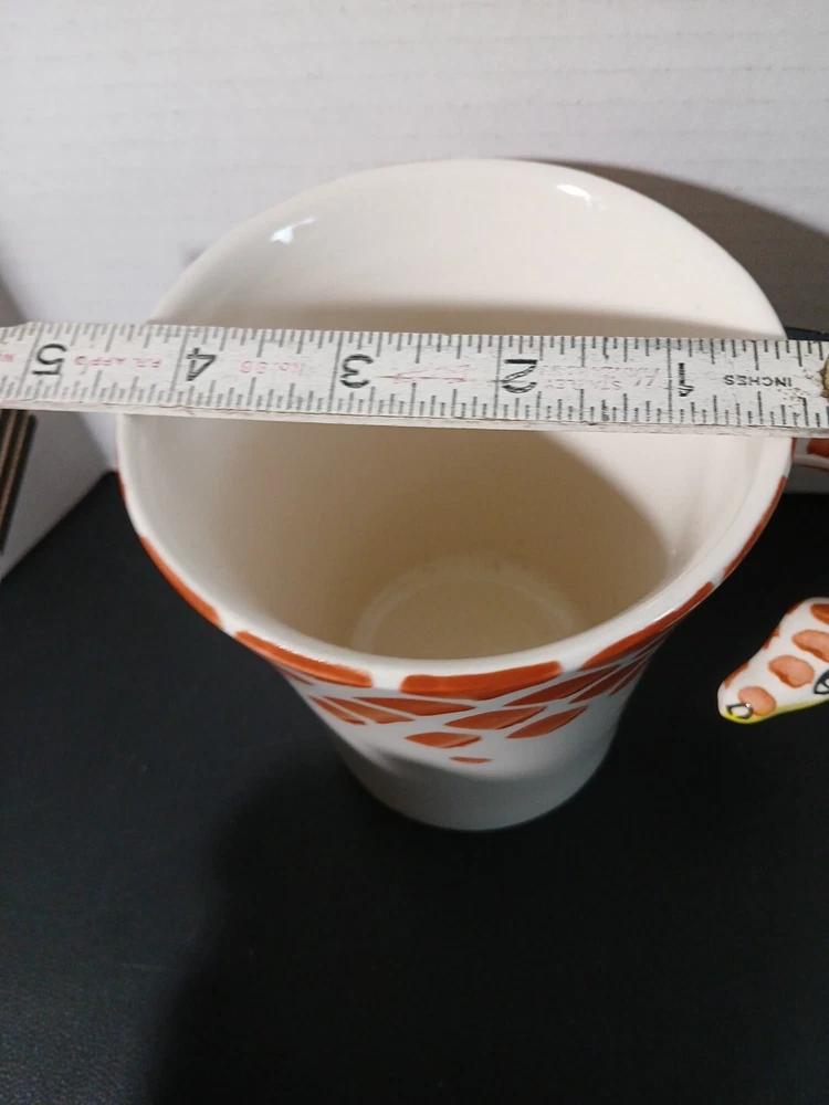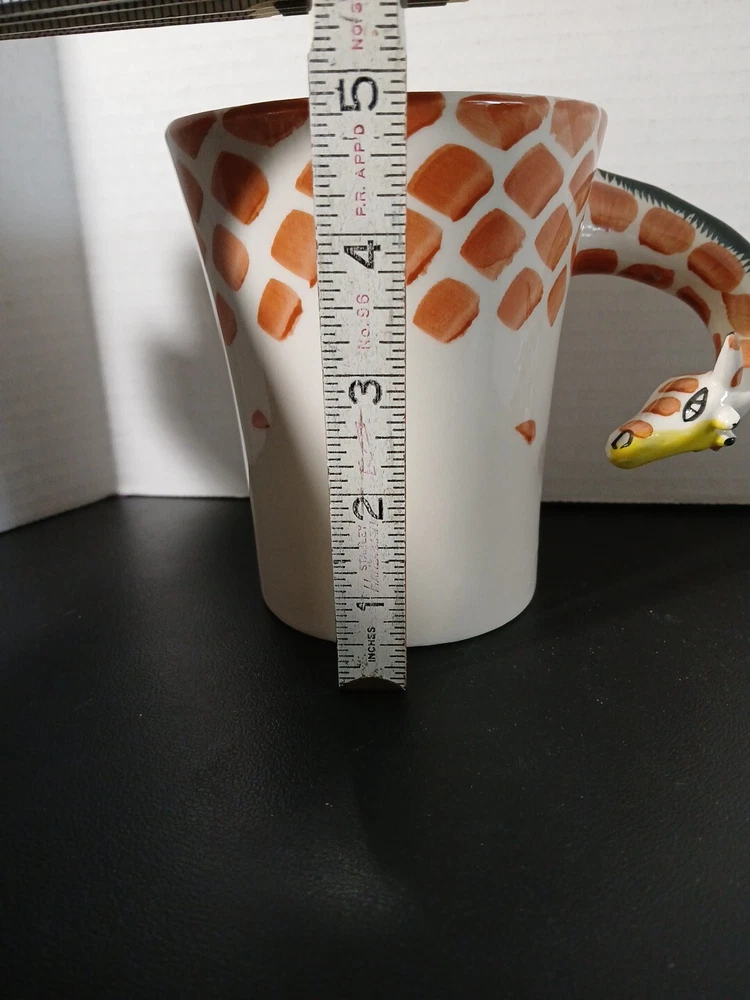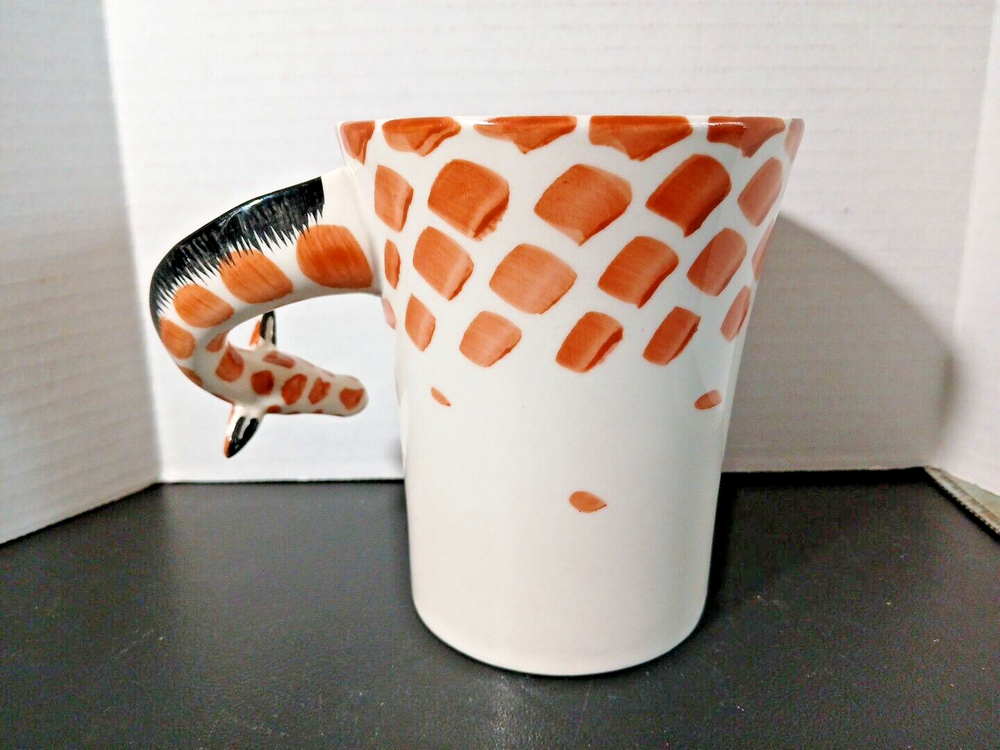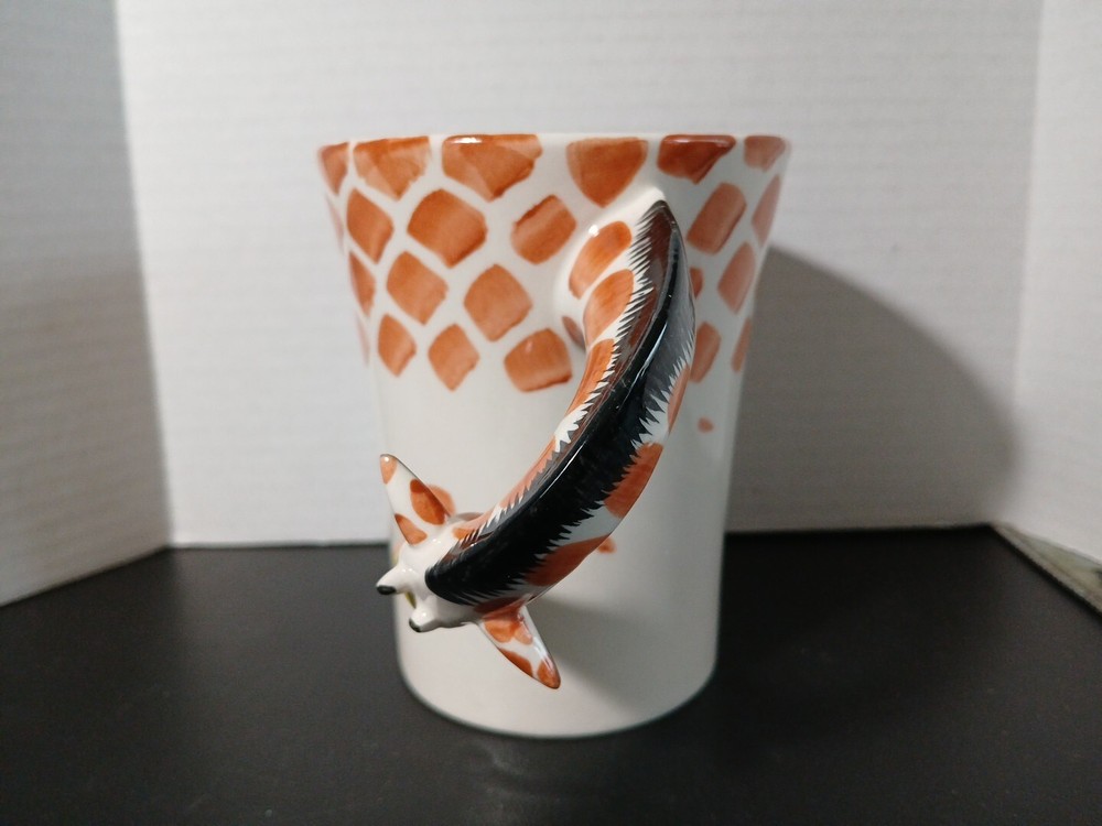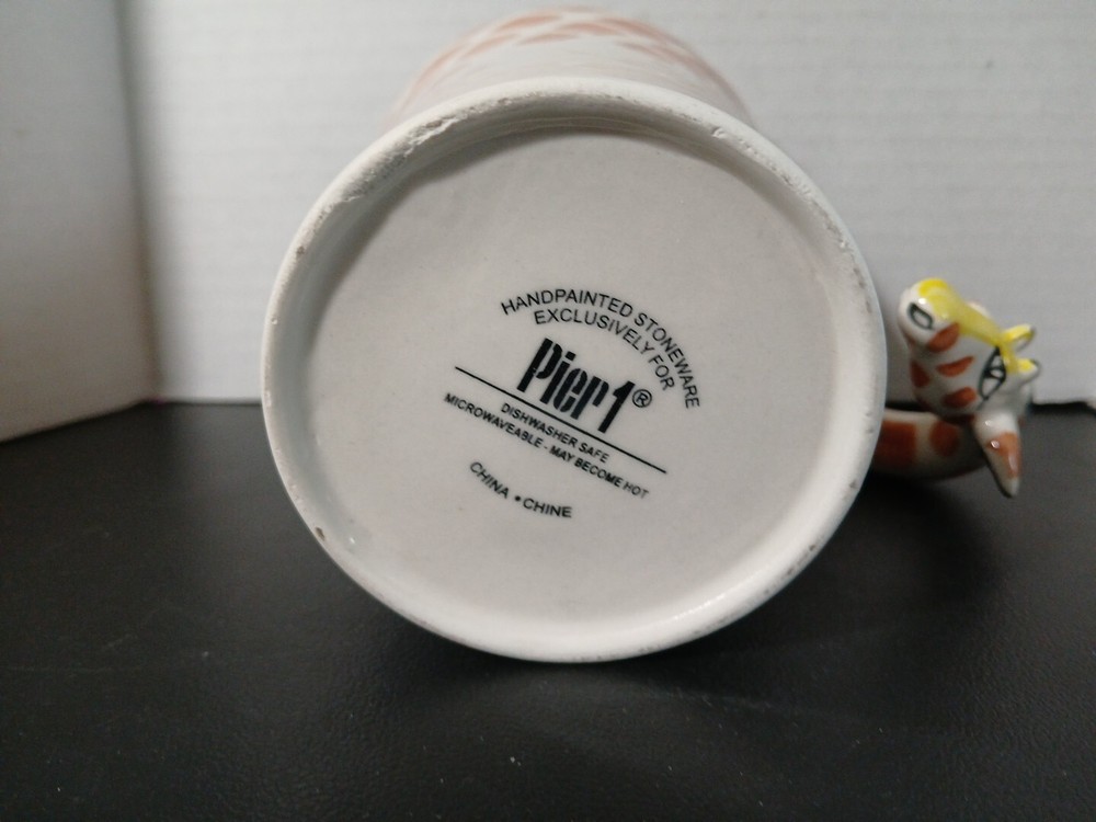 This unique mug from Pier 1 Imports features a charming giraffe neck handle and is hand painted in 3D. The stoneware material and multicolor design make it a perfect addition to any collection, whether you prefer hot or cold beverages. The set includes a coffee cup and mug, and the item stands at 5 inches tall. The original and licensed reproduction of this mug is sure to impress any collector, and it's perfect for everyday use or special occasions. Add a touch of whimsy to your kitchen or home decor with this one-of-a-kind giraffe mug.