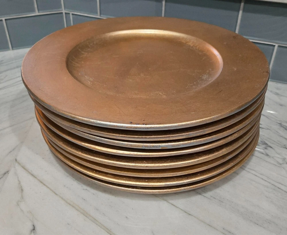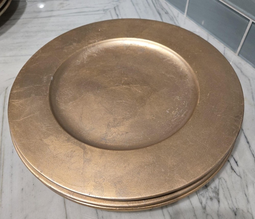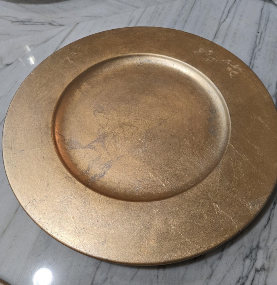 Make your table setting SHINE with this stunning Pier 1 Imports metallic gold leaf replacement charger plate. Measuring approximately 13.5" diameter, this heavy ceramic plate is perfect for all occasions, especially for the holidays! Price is for 1 charger. I have 8 chargers total. If you want more than one, I will gladly combine shipping and send you a refund. I pack well and ship fast! Thank you for looking...
