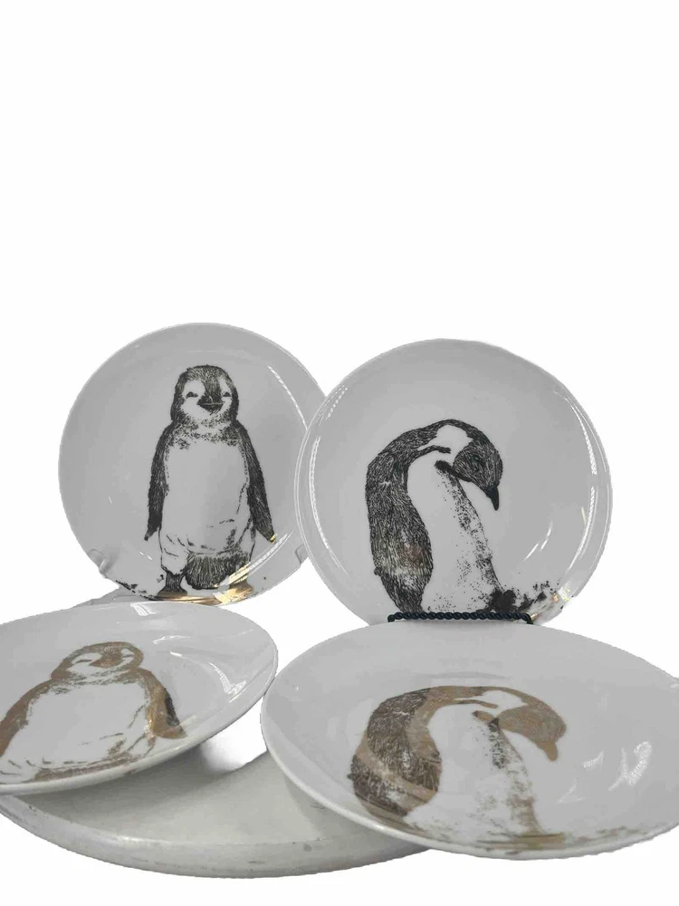Pier 1 Imports Gold Penguin small plate lot plates measure approximately 8.25" great for appetizers, bread, salad or desserts NO chips or cracks and from a smoke free home SOLD AS PICTURED