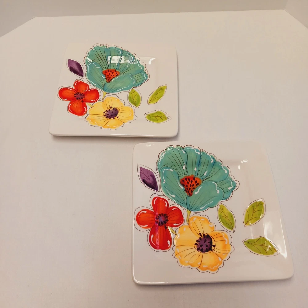 Pier 1 Imports Brittany Floral 8.5 in Salad Plates Set of 2. Good condition no chips or cracks. These two plates weigh 2lbs.14oz. boxed. Please see photos for measurements. Please see all 16 photos attached for more details before purchase. I will ship this item out to address on file via USPS Mail with a tracking number for confirmation. I ship items out Monday through Friday AM EST. Combined shipping available. Please feel free to ask any questions you may have before purchase. Thanks for looking. https://www.ebay.com/ usr/dag31363 visit my store and see all my great deals.