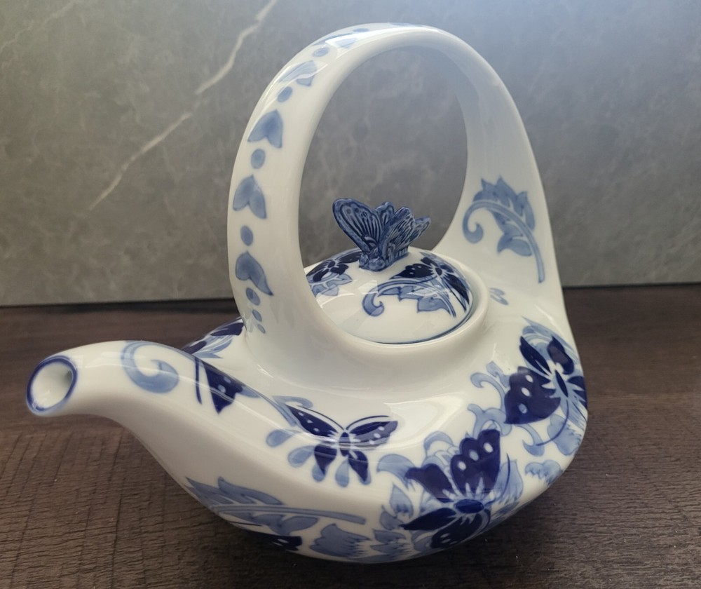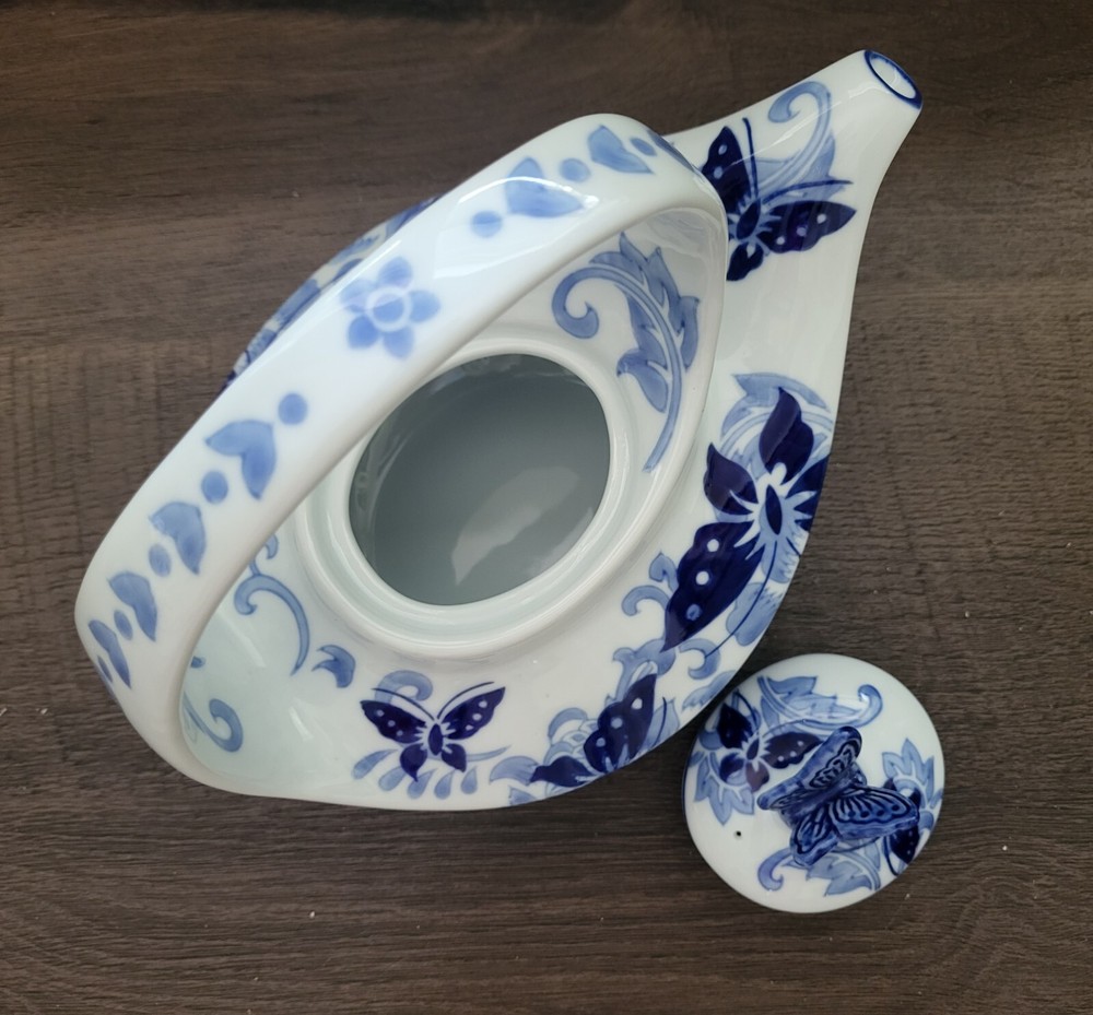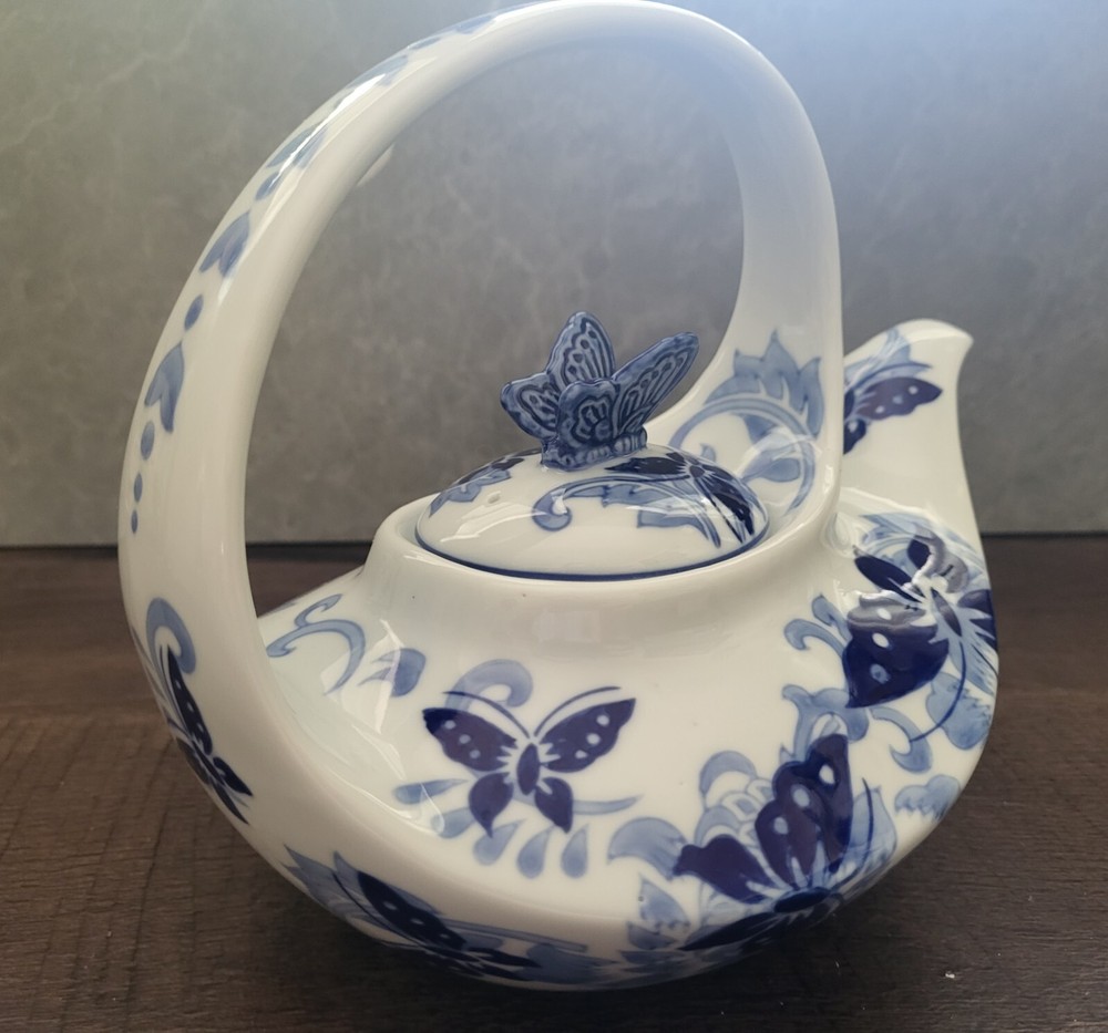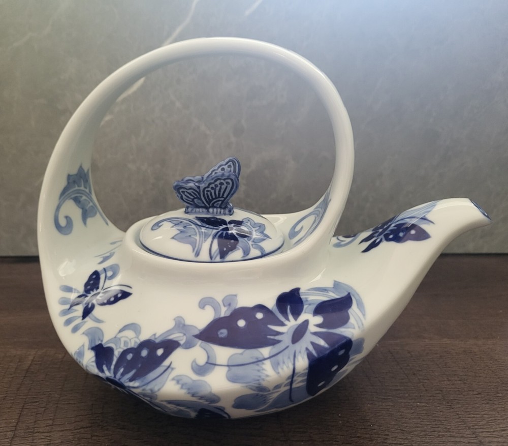 Pier 1 Imports Hand Painted Butterfly Design Teapot....