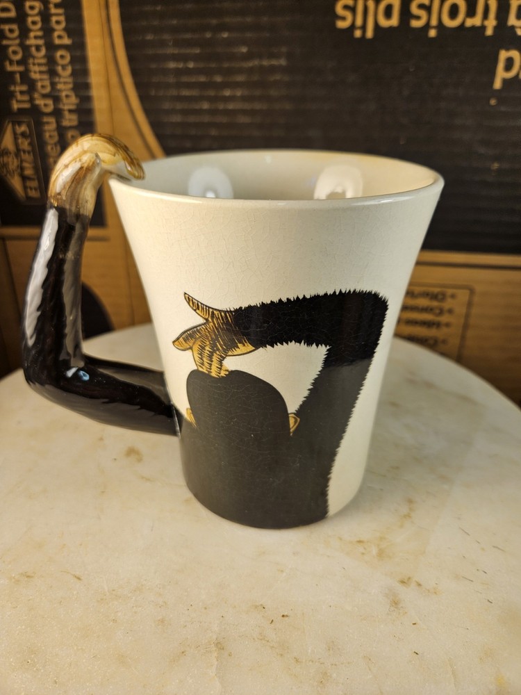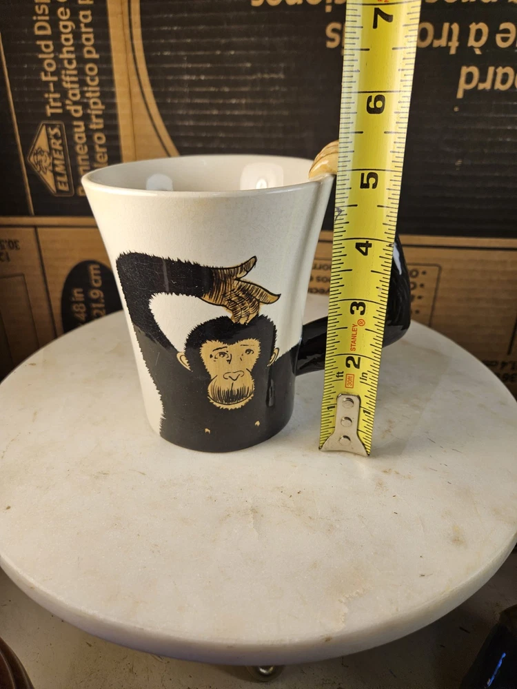 This Pier 1 Imports Hand Painted Chimpanzee Coffee Tea Mug features a unique 3D Monkey Arm Handle, making it a fun and stylish addition to your kitchen or home decor. The round ceramic mug is decorated with an animal print pattern and multicolor design, perfect for both hot and cold beverages. With a contemporary style and a vintage feel, this mug is suitable for all occasions and appeals to both teens, unisex adults, and unisex kids who appreciate wild animals and a quirky touch in their drinkware collection. This original piece from Pier 1 Imports is a standout choice for those looking to add some personality to their mug collection. Condition is excellent. No chips or cracks or breaks. I do my best to describe the item to the best of my ability. Please read and look and ask questions before you buy. All offers are seriously considered and sometimes accepted. Thanks for looking. Please check out my ebay store and follow for fun new items.