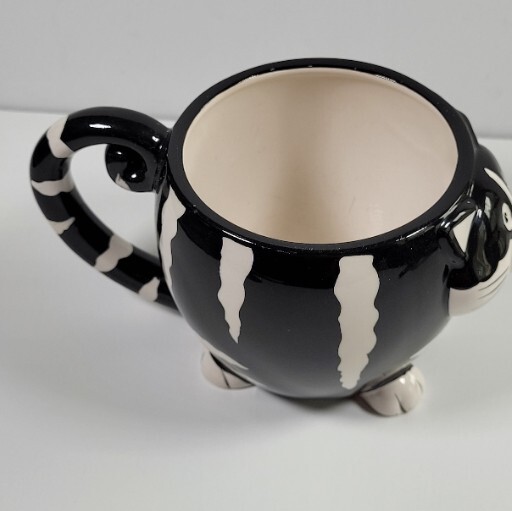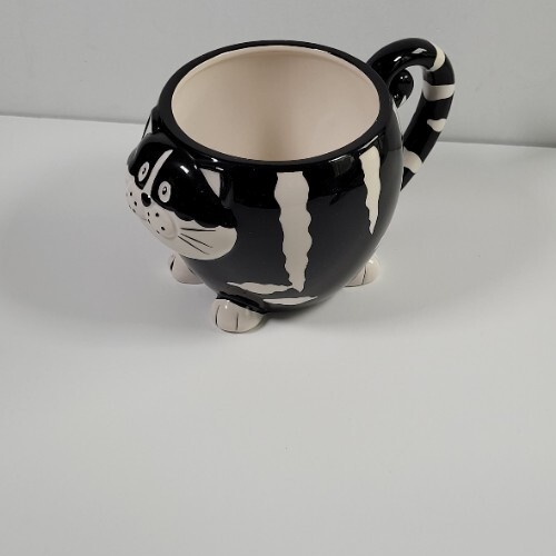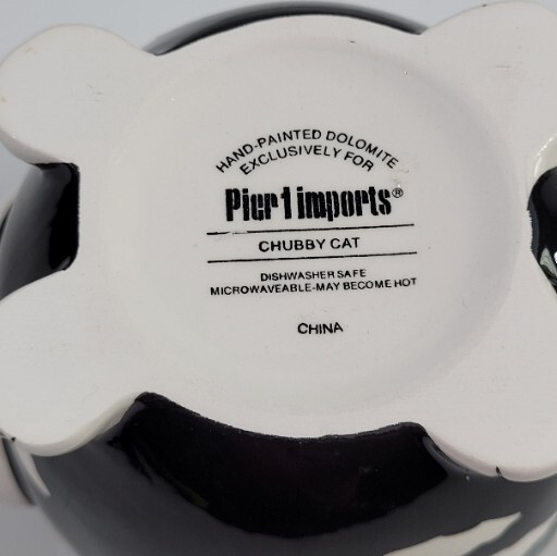 This charming black and white chubby cat coffee mug from Pier 1 Imports is a must-have for any cat lover. The hand-painted design features a playful black cat with an adorable expression, making it a perfect addition to your collection. The 12oz ceramic and porcelain mug is durable and ideal for everyday use. The animal print pattern and unique design make it a great conversation starter, and it's suitable for all occasions. Whether you're sipping on coffee or tea, this mug is sure to bring a smile to your face. Add it to your dinnerware and serveware collection today! No chips or cracks