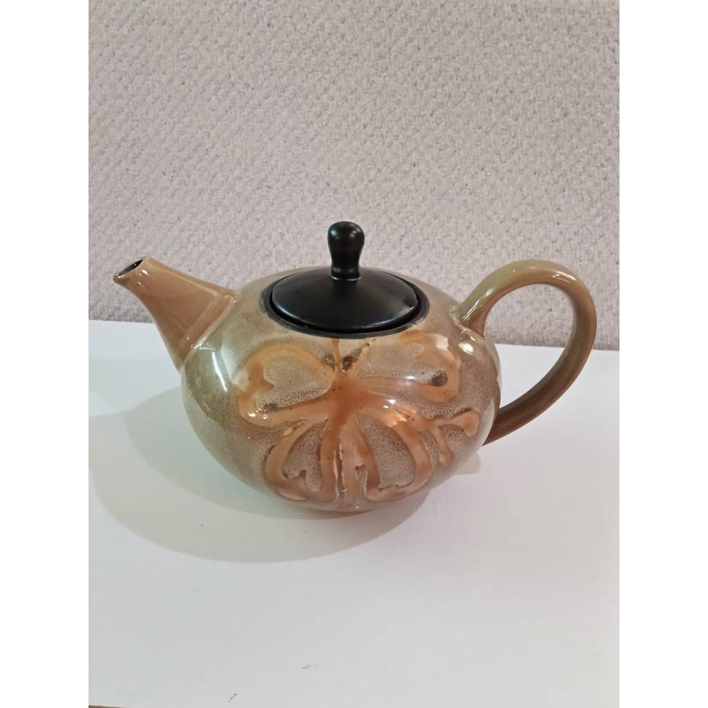 Pier 1 Imports Hand Painted Stoneware Kioko Teapot Tan Black Lid Gold Design Brand: Pier 1 Imports Color: Beige Material: Stoneware Original/Licensed Reproduction: Original Features: Microwave Safe, Hand Painted, Dishwasher Safe Style: Art Deco Theme: Tea Sold as pictured. Thanks for looking! Excellent pre-owned condition This listing was easily created using the SellHound Posting App!