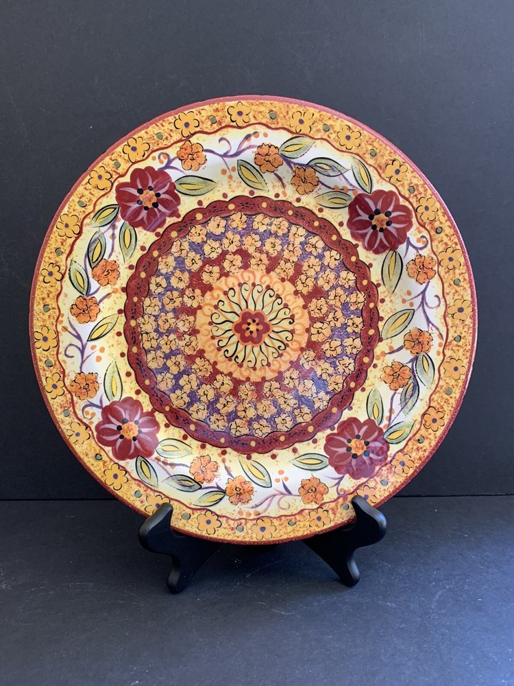 Hand painted Pier 1 Imports Helena pattern dinner plate. 10.75” Diameter. Earthenware. Dishwasher Microwave safe. Excellent Condition with no chips, cracks, or scratches.