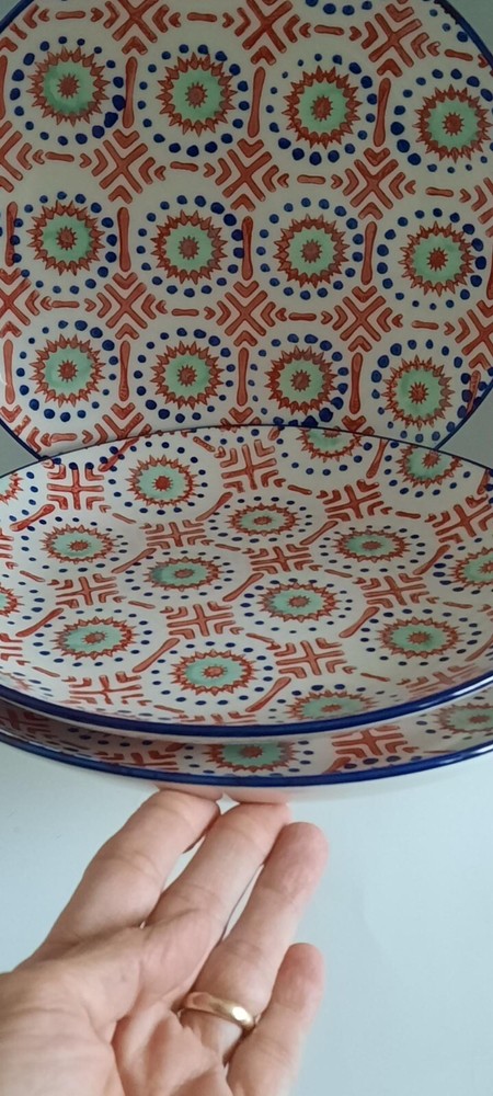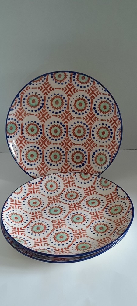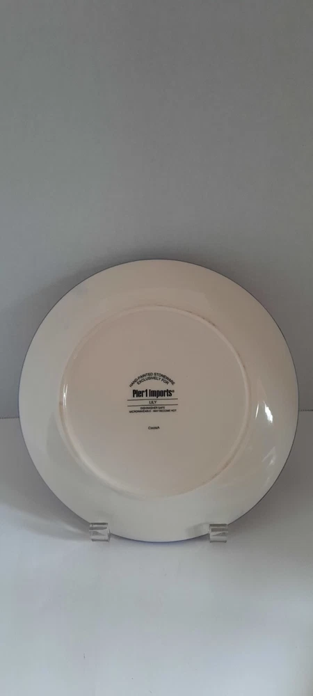 Pier 1 Imports Hand-Painted Stoneware Dining Lily Pattern Salad Plates Lot Of 3 Used Pre-Own In Excellent Condition No Chips No Cracks Small Wear Under Salad Plates Due To Used See All The Pictures. The Lot Comes With Three 8" Round Salad Plates With Beautiful Bright Colors Lily Pattern Made In China Perfect For Any Occasion The Lot Is Sold As Is.