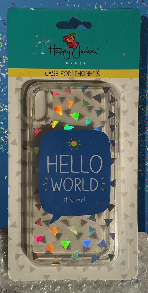 Pier 1 Imports Happy Jackson “HELLO WORLD it’s me!” iPhone X Case Hologram Design Condition is Brand New in Package Ships via USPS Mail Brand New and Unopened iPhone X case Graphic reads “HELLO WORLD it’s me!” Imported from London, UK Design includes a confetti-like background of holographic triangles If you have any questions, please message me prior to purchase….
