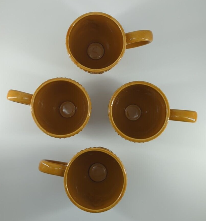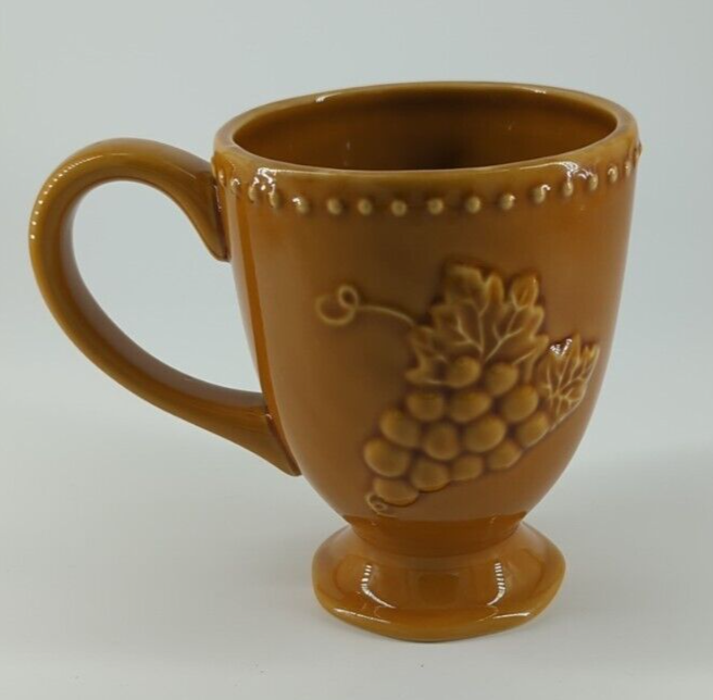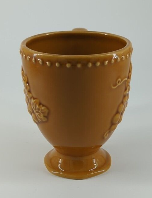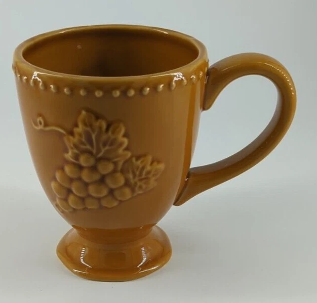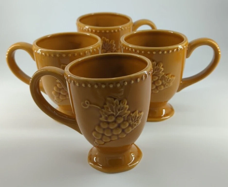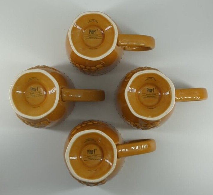 Pier 1 Imports Harvest Gold COFFEE MUG Embossed Grapes 3.5" Diameter 4.5 Tall Set of 4 Pre-Owned Like New Condition