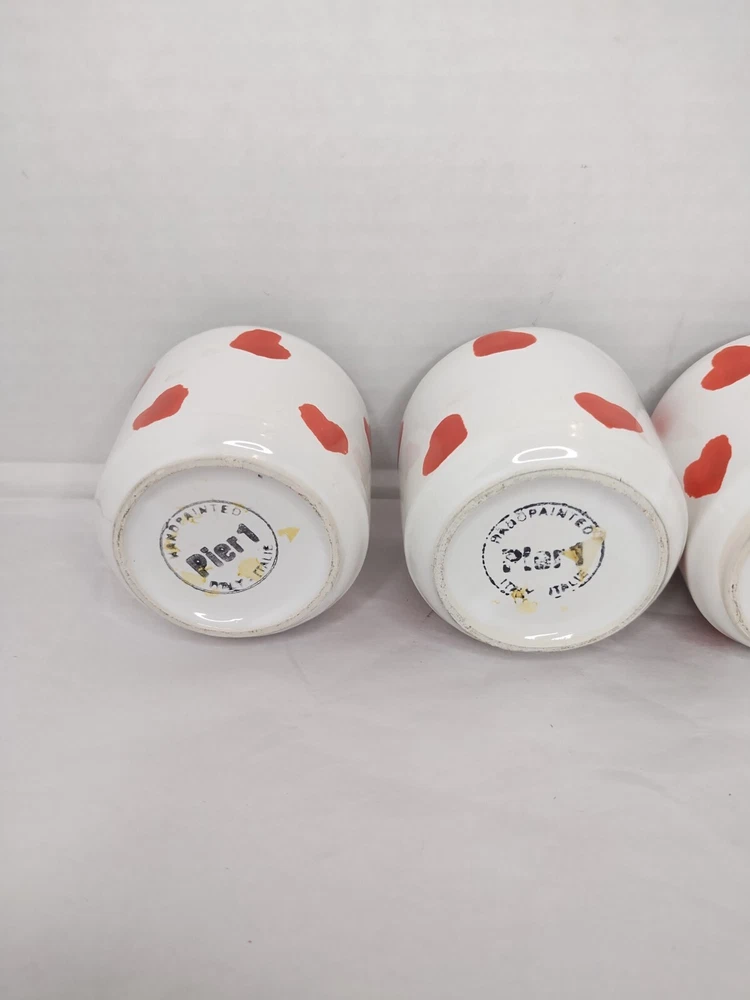 ITEM: Pier 1 Imports Hearts Hand Painted Italy Set of 7 Candle Holders Valentines VTG This item is in Great Used Vintage Condition Questions and emails may take up to 24 hours to receive a response due to this being a small business, with just 2 employees. Thank you for your patience! SHIPPING: We ship Monday-Friday, with a 1-Business Day handling window. After 4PM on Weekdays, Weekends, and Holidays, your item will be packaged, label printed, and dropped off for shipment the following Business Day. We usually use USPS or UPS depending on the size of the package. If the item is lost or damaged in transit, please let us know as soon as you receive it so that we can start an insurance claim with the delivery service. RETURNS: We strive to list every item correctly with plenty of pictures to show you the item exactly how it is. We welcome you to message us with any questions BEFORE purchase! If you receive your item and it is not what you expected, we will gladly accept a return request. Once the item is received in the original condition that it was sent out in, we will refund you minus the shipping cost Thanks for stopping by and supporting our small business! Every sale makes us do a happy dance, so, THANK YOU! SUBSCRIBE www.youtube.com/@Thriftandflip31 ? ABOUT US ? We?re Stacy and Micah, your curators of vibrant and profitable thrifting adventures! Specializing in uncovering hidden gems from yard sales, Goodwill treasures, and beyond, we transform the ordinary into extraordinary finds to flip for profit!