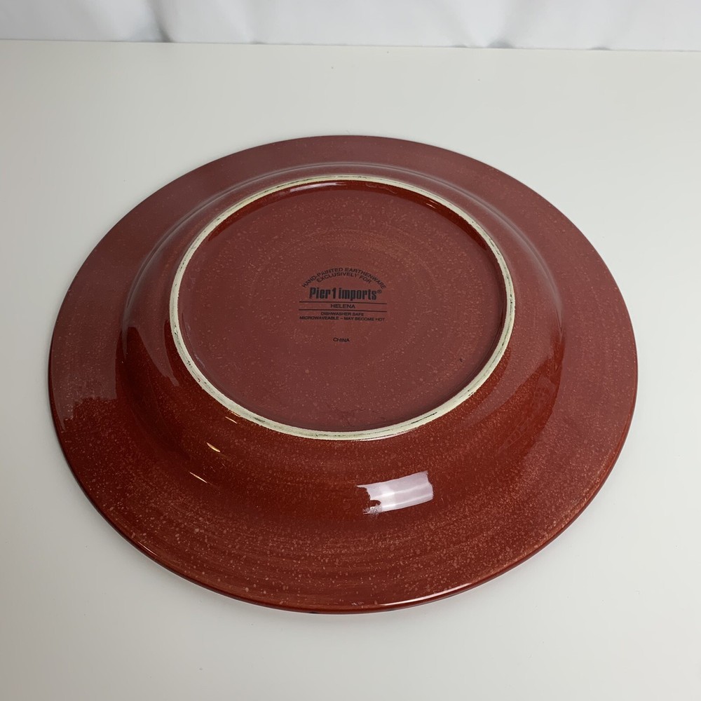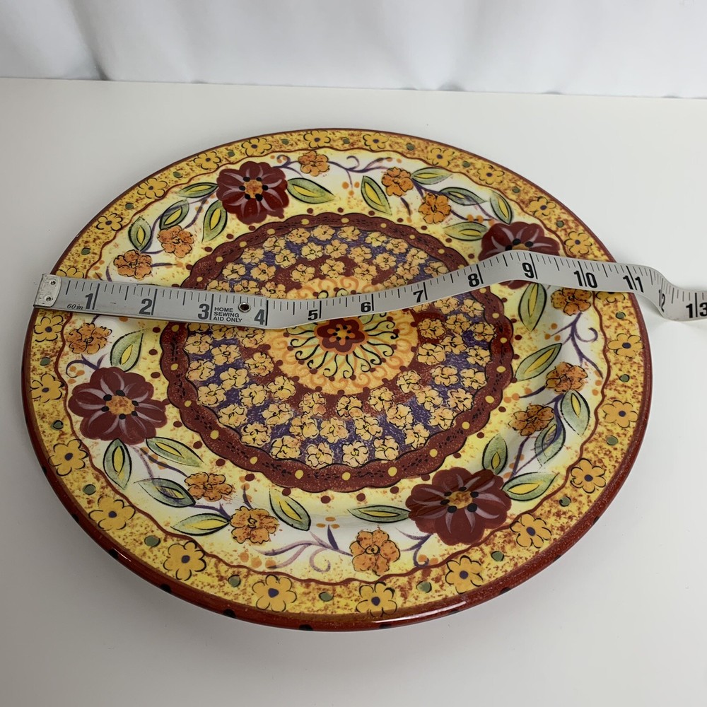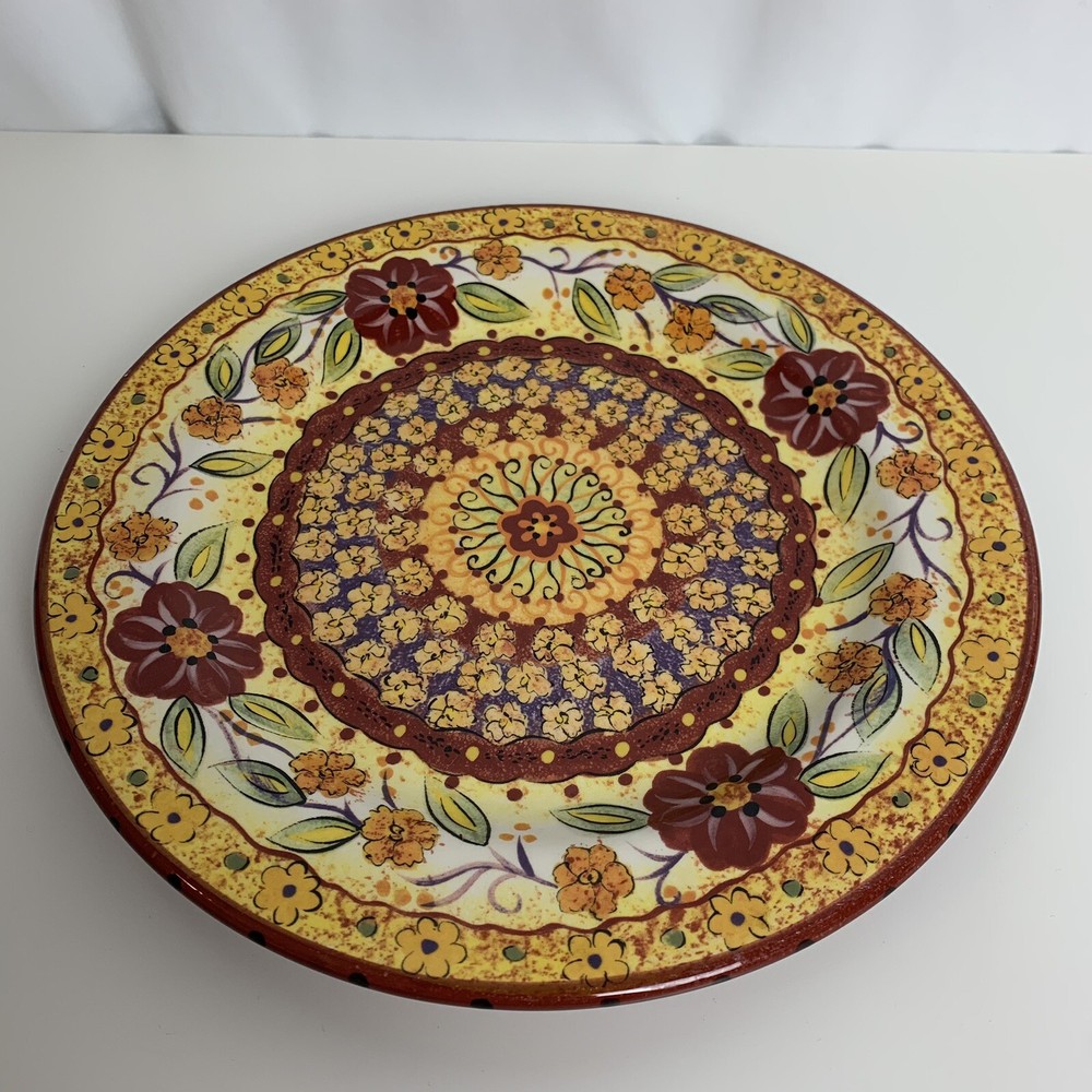 The Pier 1 Imports Helena Dinner Plate is a vibrant and colorful piece featuring a floral pattern on a yellow background, hand-painted on stoneware with a round shape and a diameter of 10.5". This dinner plate is part of a set and is microwave and dishwasher safe for easy use. The production style is earthenware and it has a printed backstamp, adding to its charm and uniqueness. Ideal for adding a cheerful touch to any dining table setting. All my items come from a smoke free home. Please feel free to contact me with any questions you may have. Free returns and the buyer pays for return shipping.