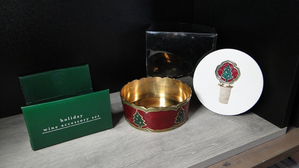 Pier 1 Imports Holiday "CHRISTMAS TREE DESIGN" Wine accessory set See photos for condition Buyer pays shipping