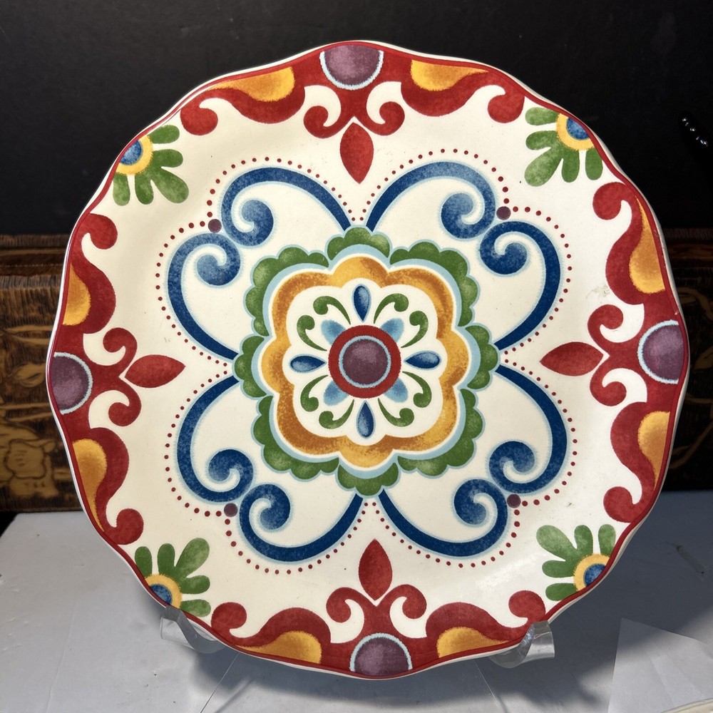 One Pier 1 Imports Ironstone 9” Global Medallion Salad Plate Colorful vintage item. Bx22