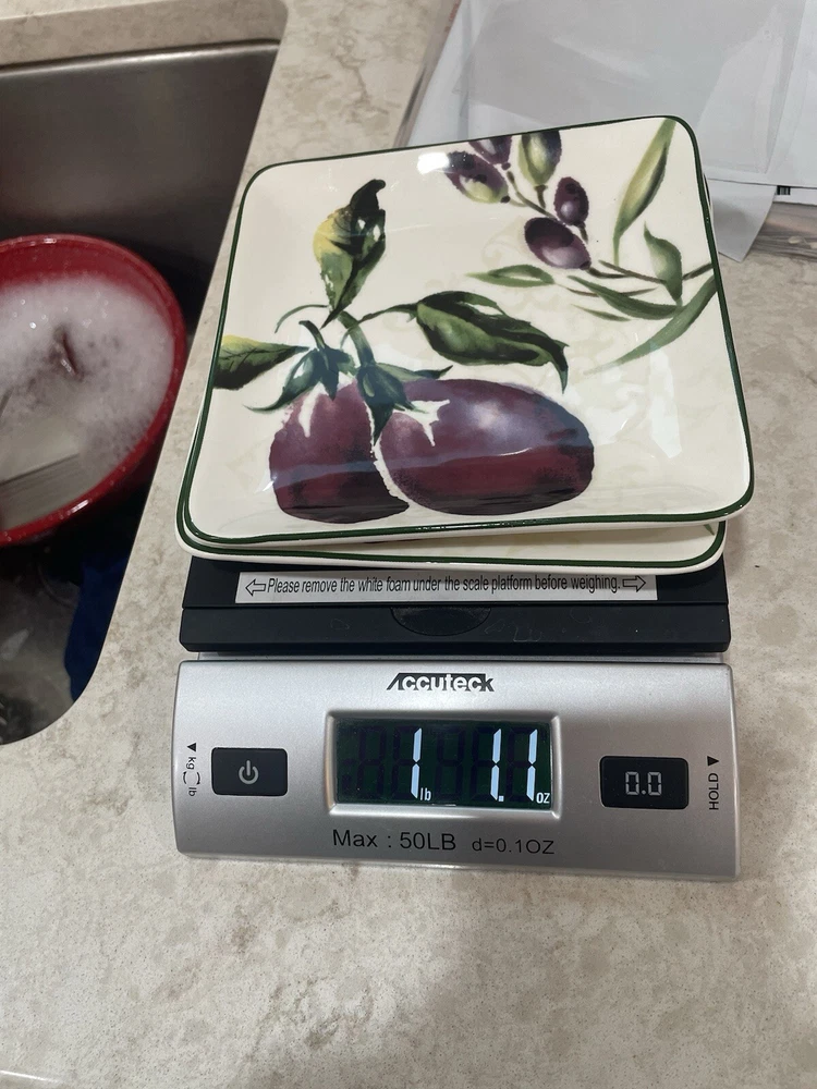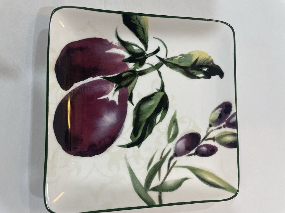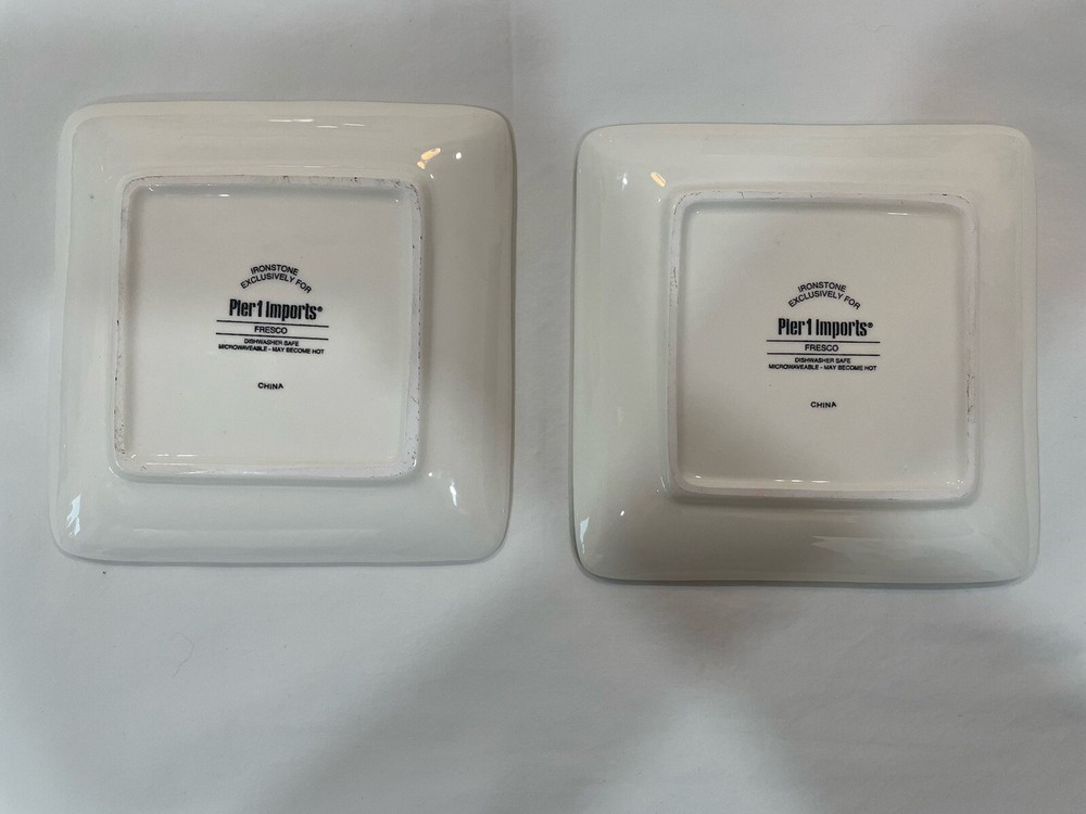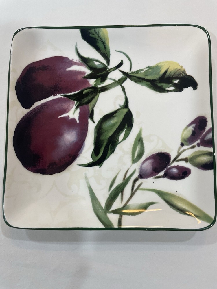 Pier 1 Imports Ironstone Fresco Plates Square Set of 2 Eggplant & Garlic 6” Shelf...