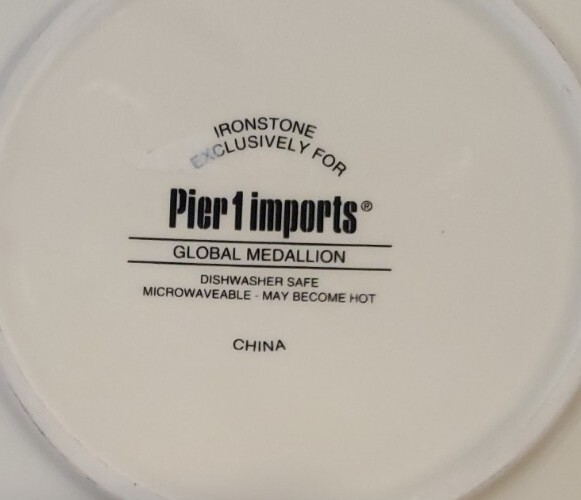 Pier 1 Imports Ironstone Global Medallion Round Dessert Bread Plates Set of 2 6". Very Nice Pre Owned Condition 00198gw