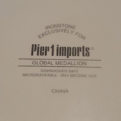 Pier 1 Imports Ironstone Global Medallion Round Dinner Plates Set of 2 11". Very Nice Pre Owned Condition 00348gw...