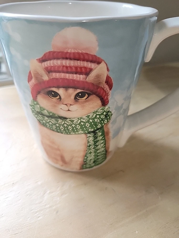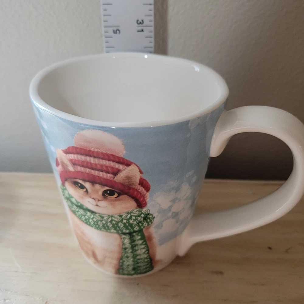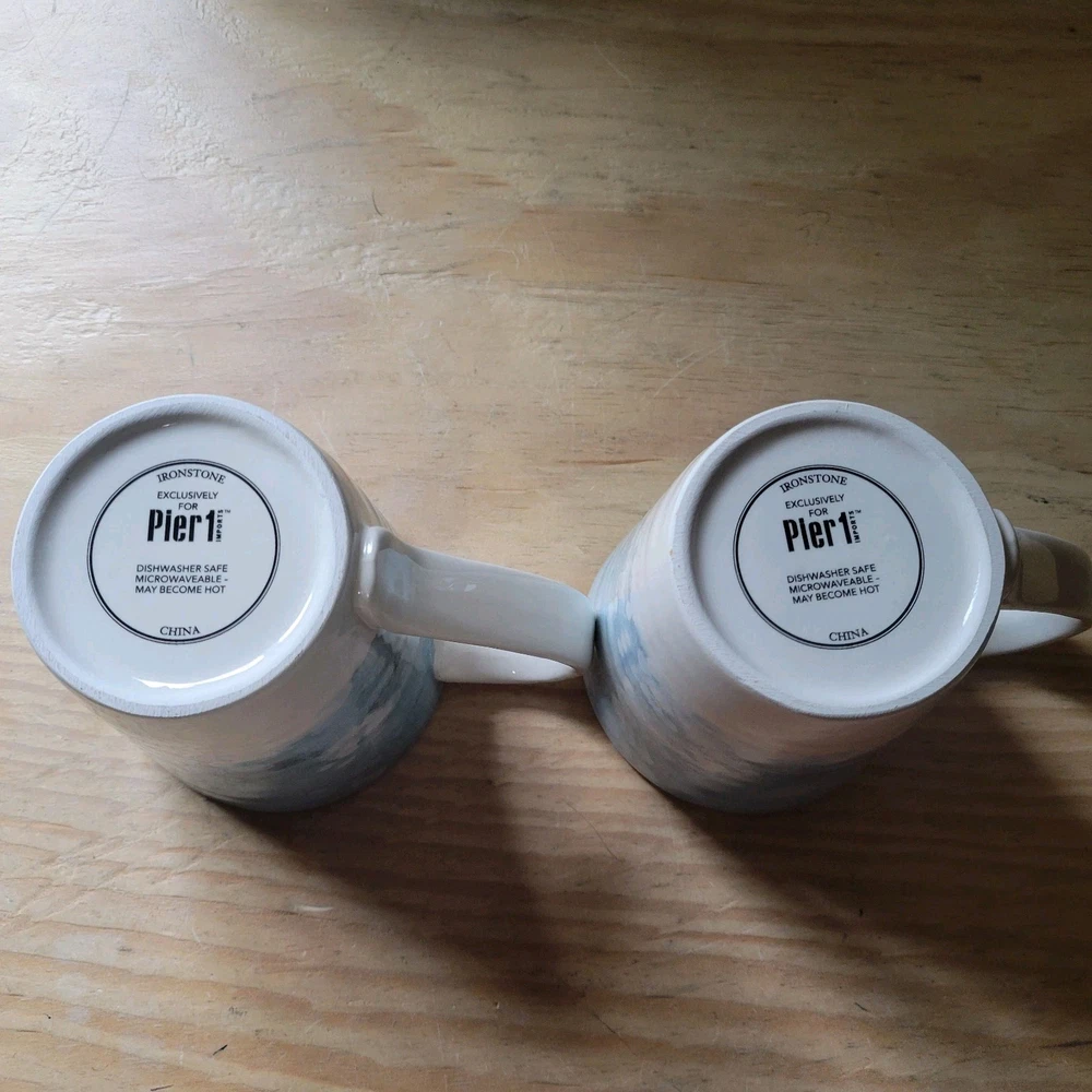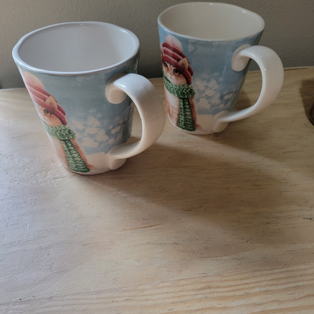 The Pier 1 Imports Ironstone Winter Kitty Coffee Mugs Set of 2 is a contemporary-themed, ironstone coffee mug set perfect for the winter season. Featuring a multicolor design with a glossy finish, these mugs are dishwasher safe and perfect for enjoying your favorite hot beverages during the winter holidays. The mugs do not come with a signature, but they are printed with the brand Pier 1 Imports and are sure to add a festive touch to your morning coffee routine.