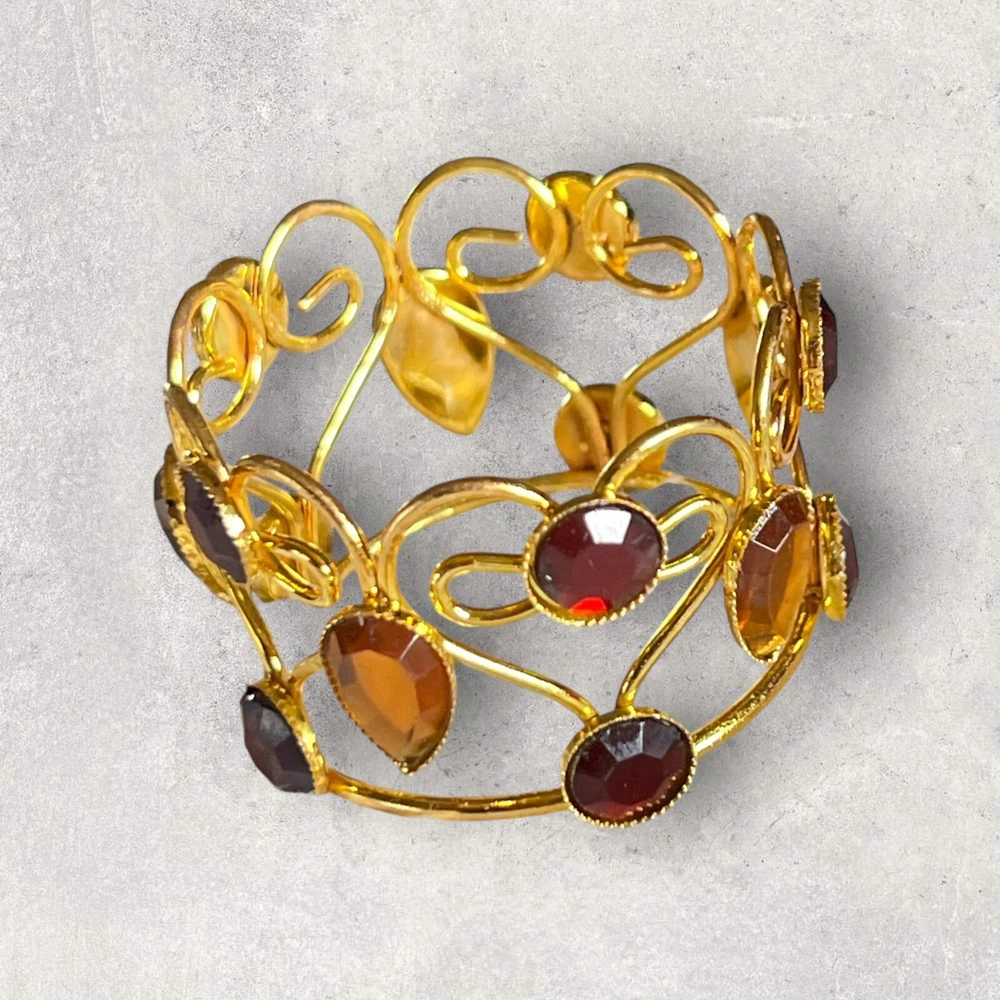 Pier 1 Imports Jeweled Napkin Rings Red Amber Beads Gold Filigree Set Of 4 NEW open box...