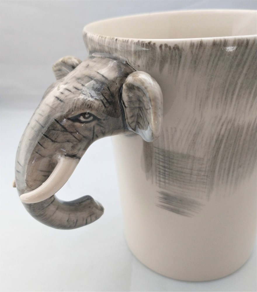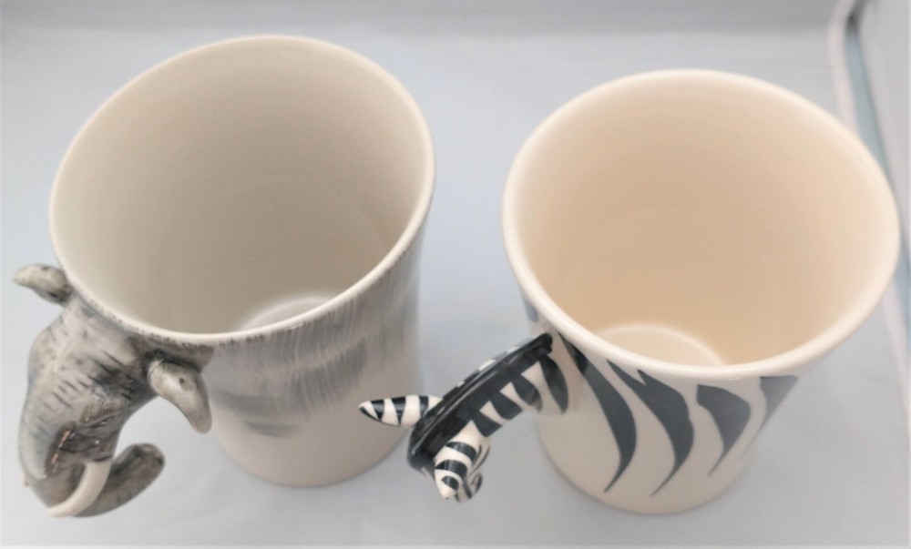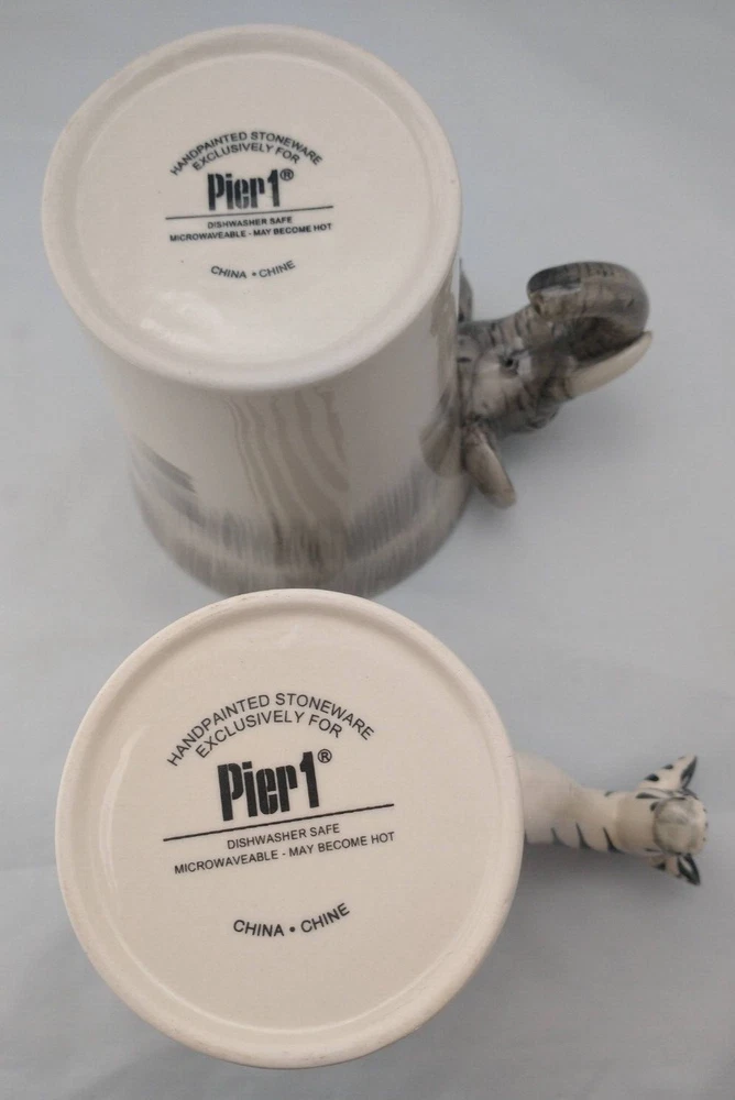 Pier 1 Imports Large Coffee Mugs 3D Zebra & Elephant 5" Tall, 4" Wide Excellent condition