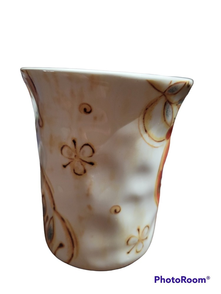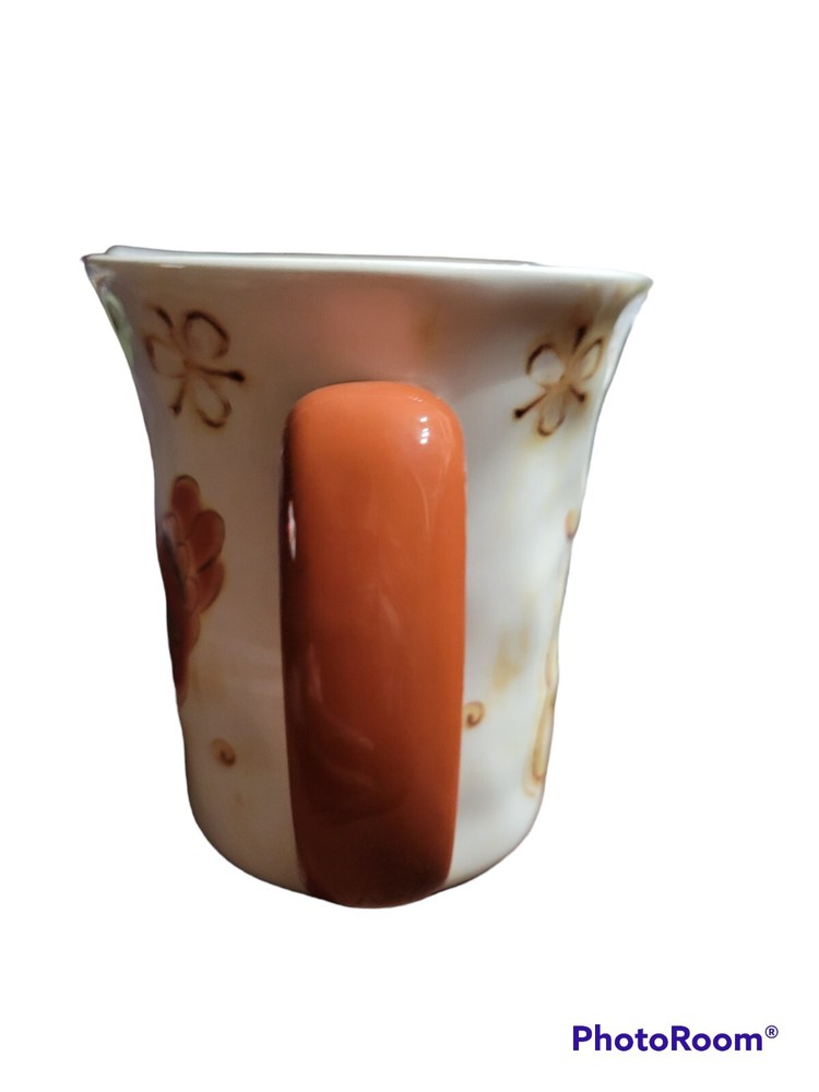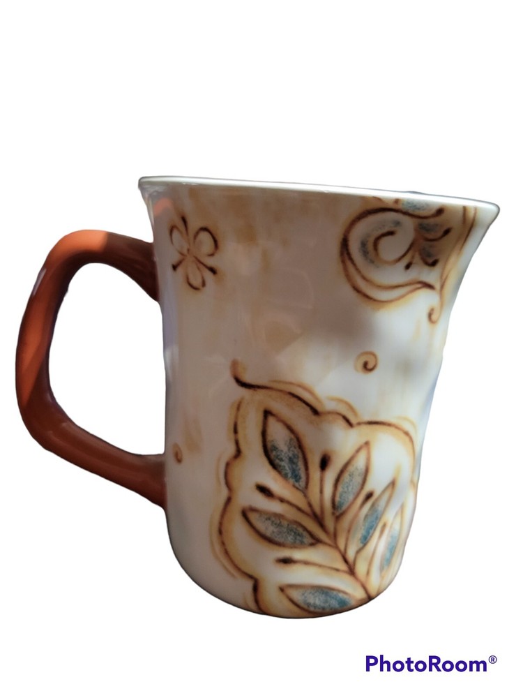 Pier 1 Imports Large Stoneware Ceramic White Orange Coffee Textured Mug Gallo.