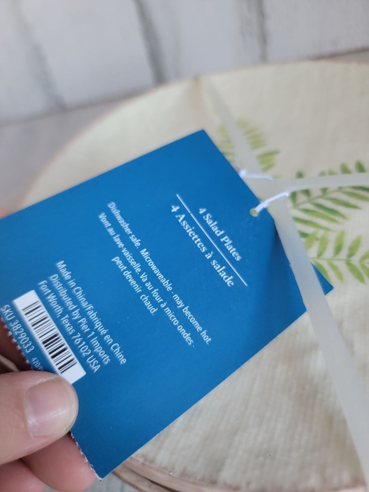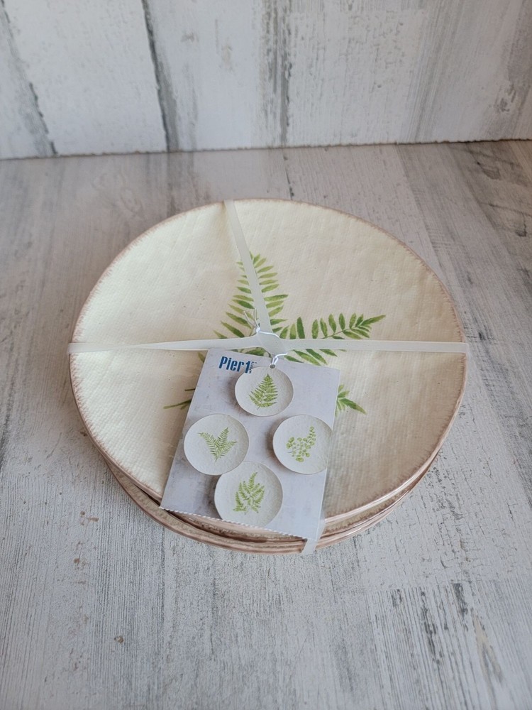Pier 1 Imports Leaf print set for salad plate floral 8 1/2" across Product is new, 4 different print styles, no box If item is with box will be in pictures, getting what is pictured only. Thank you No batteries are included in the items. Non smoking home We are a family run business with 3 little girls! We are building our own brand with them and hopefully you will join our journey! Thank you so much and have a wonderful day! Exclusive Elegance
