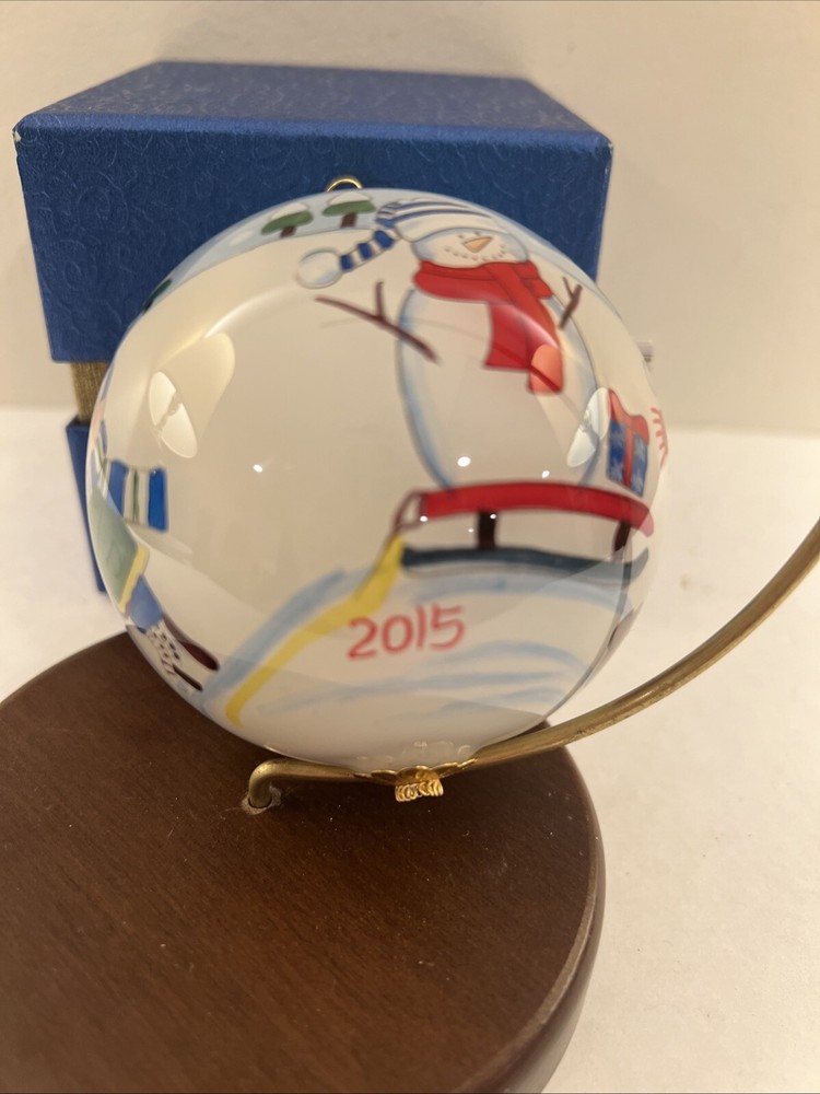 Pier 1 colorfully detailed snowmen and kids from 2015 with metal tag and box