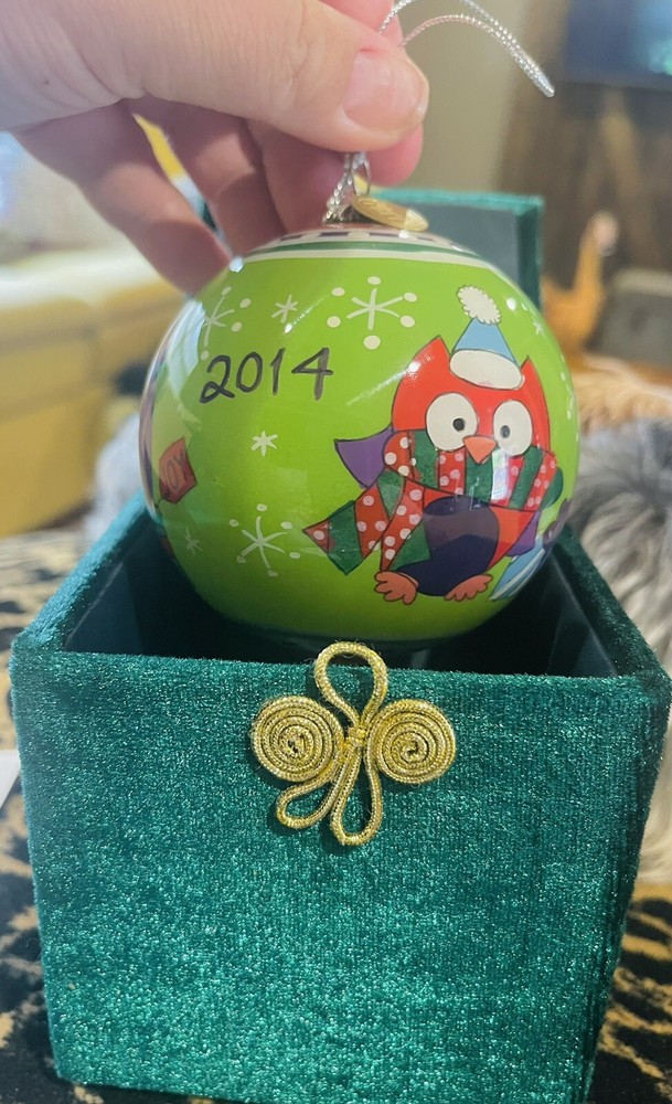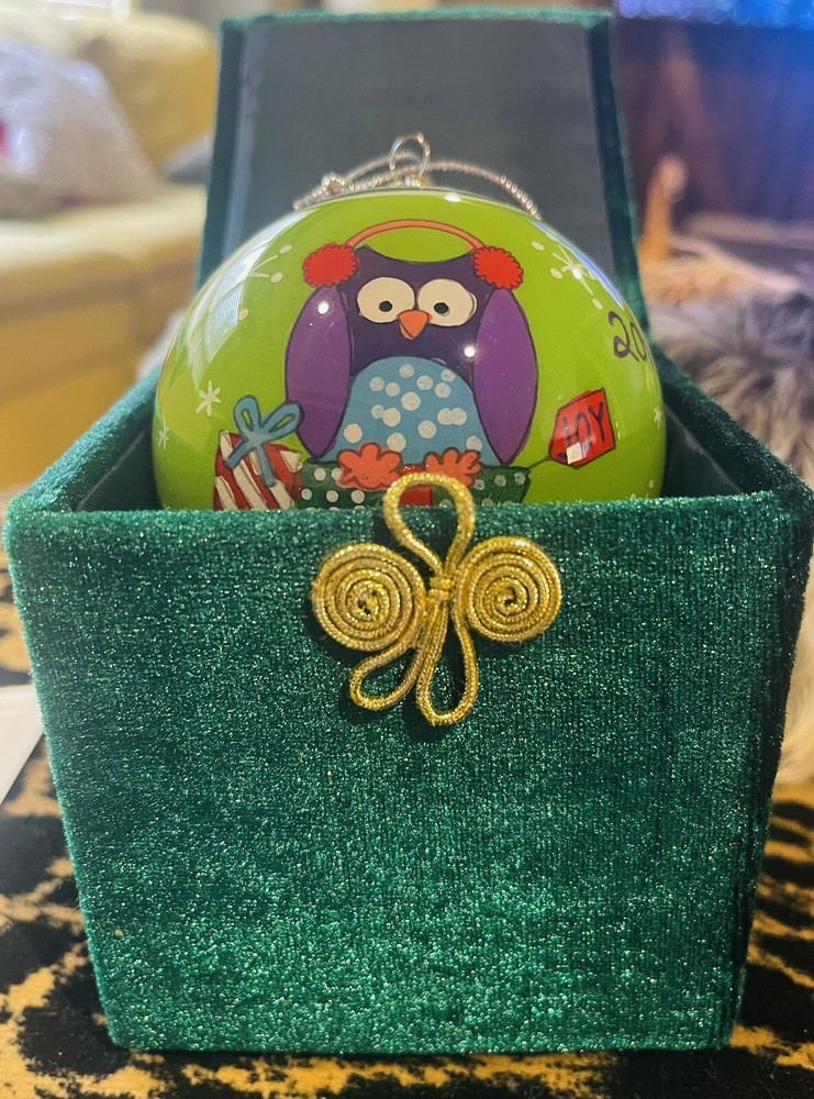 Pier 1 Imports Li Bien Glass Christmas Ornament Winter Owl 2014 with beautiful velvet box. Excellent co ditto . See pics.