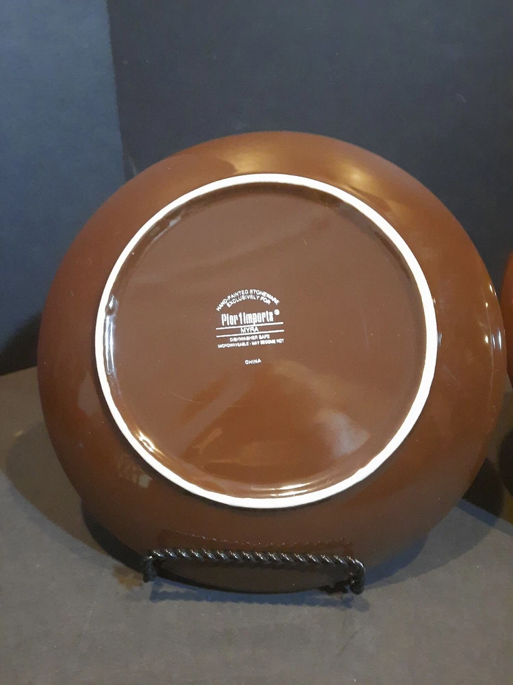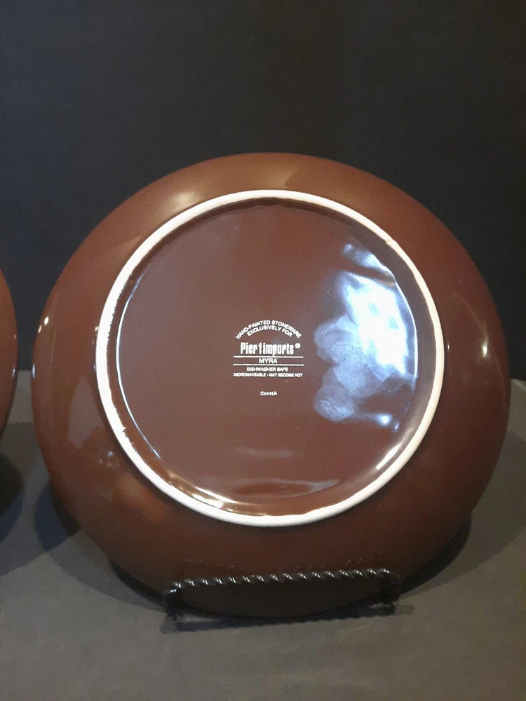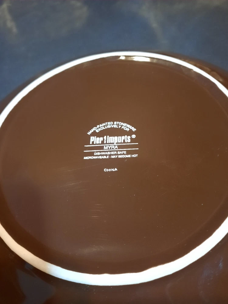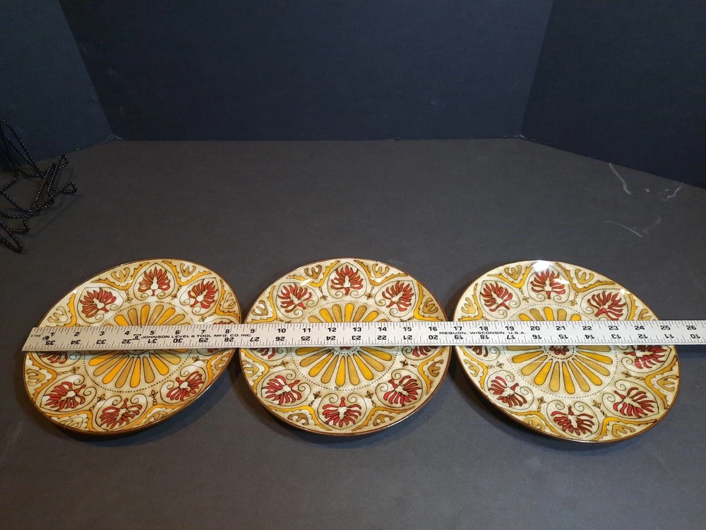 Pier 1 Imports MYRA Salad Plate Handpainted Stoneware. Set of 3 salad plates. This is a rare discontinued pattern. Each plate measures 8 1/4" and is in good pre owned condition. No chips or cracks. Light utensil wear. Please see pictures for details and don't miss out on this beautiful set.