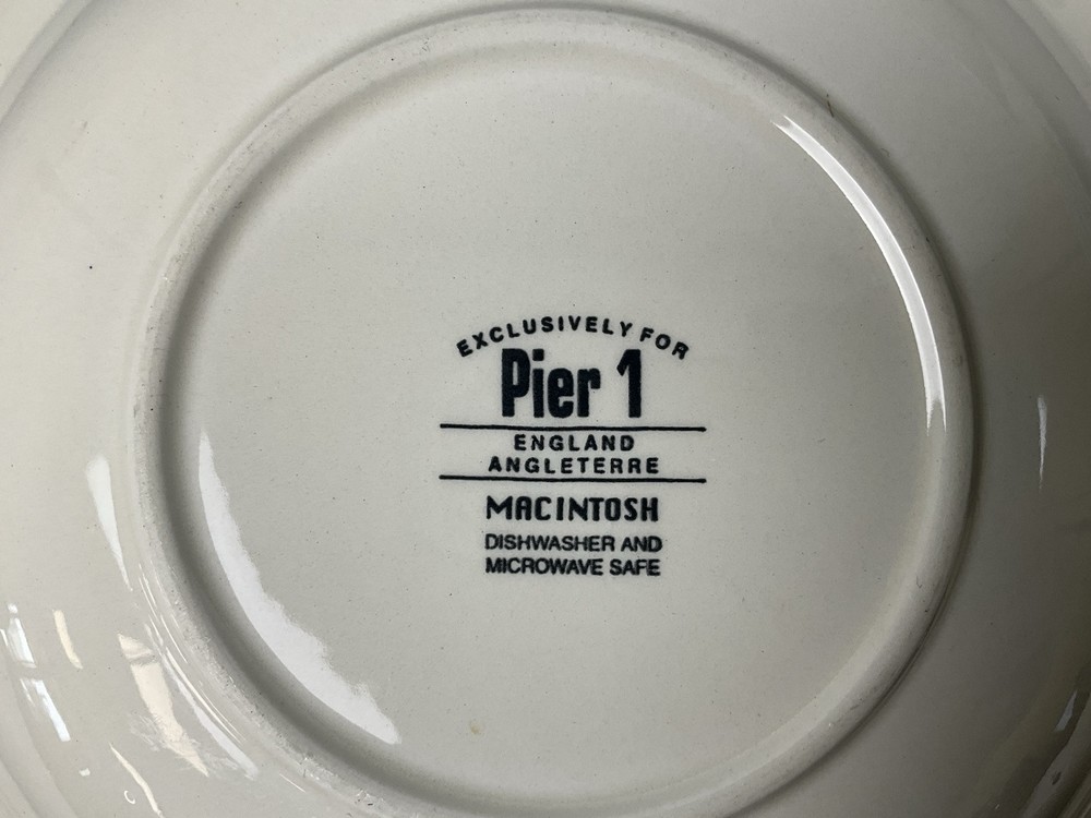 This is a set of 8 Pier 1 Macintosh tableware that feature 6 dinner plates, 1 soup bowl and 1 salad bowl. This tableware set does show signed of wear and utensil marks from prior use but otherwise they are in very good condition. Please see all photos for full condition details and feel free to contact me with any questions.