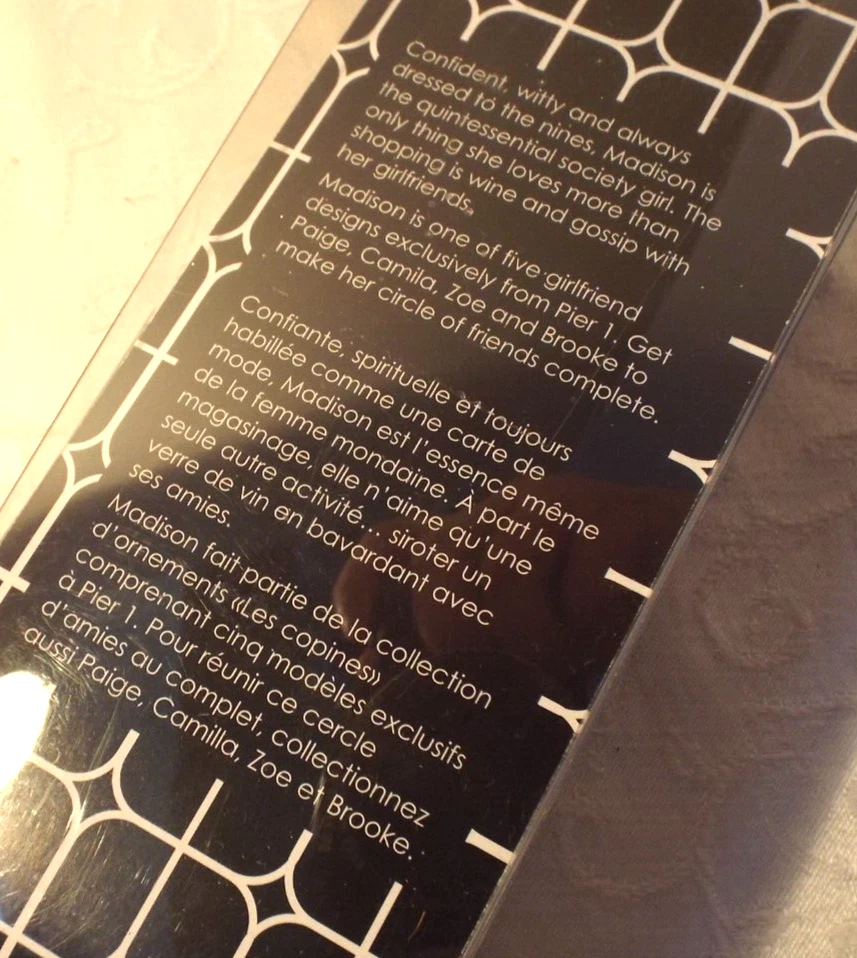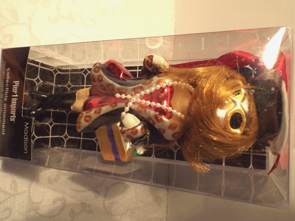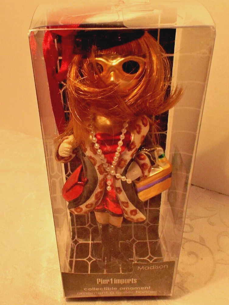 This Pier 1 Girlfriend's Christmas Ornament is brand new in an open box and in perfect condition. It has a shiny blown glass look of vintage ornaments and features "Madison" who is obviously a very trendy and fashion forward young woman. This adorable collectible ornament was a wonderful little fab find and I hope you love it as much as I do. Happy Shopping.