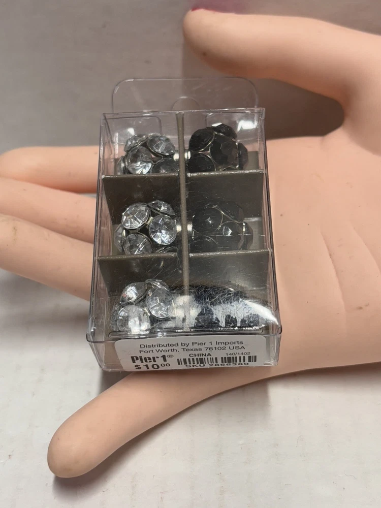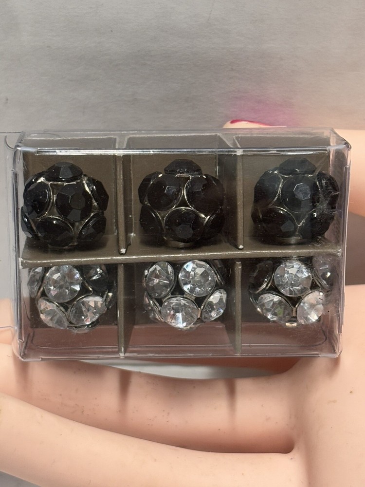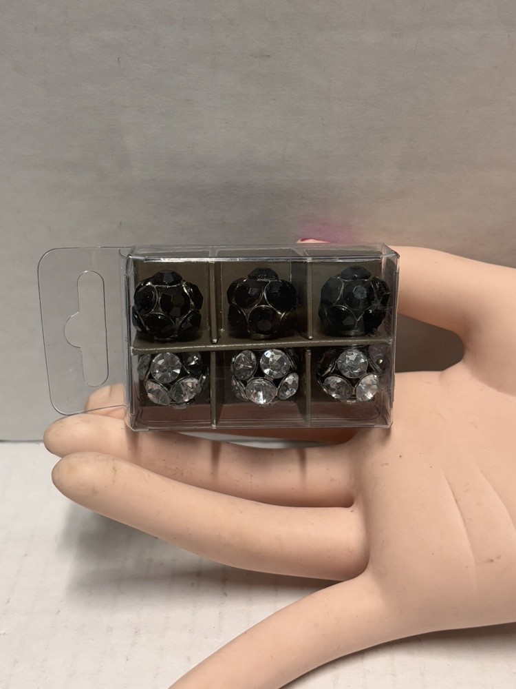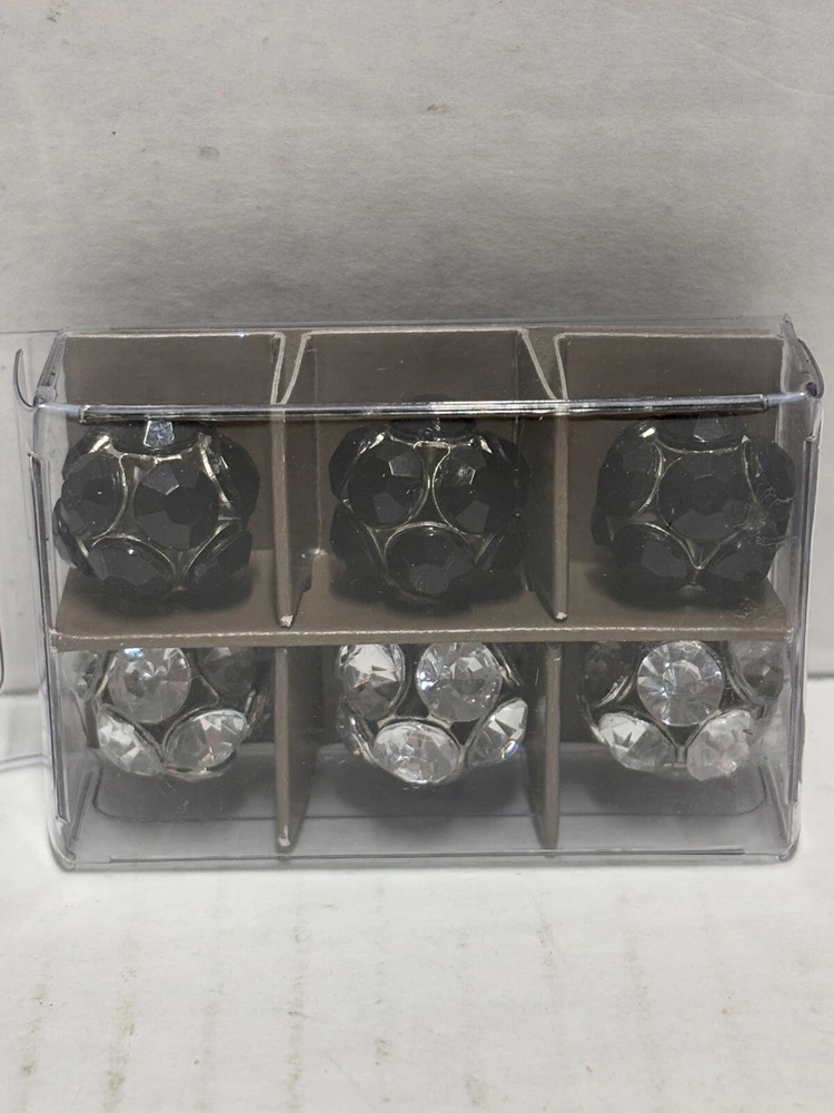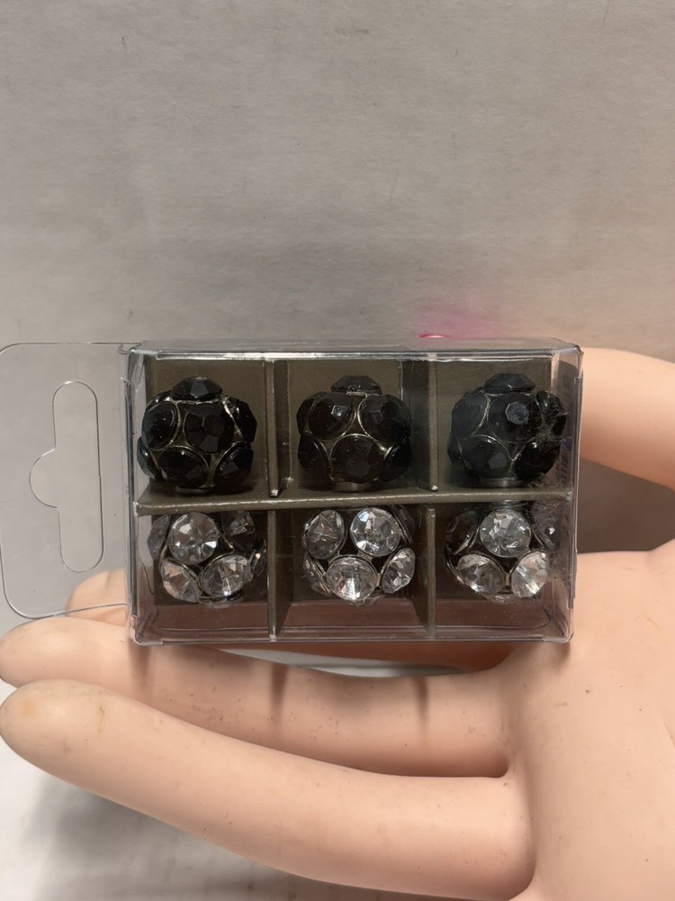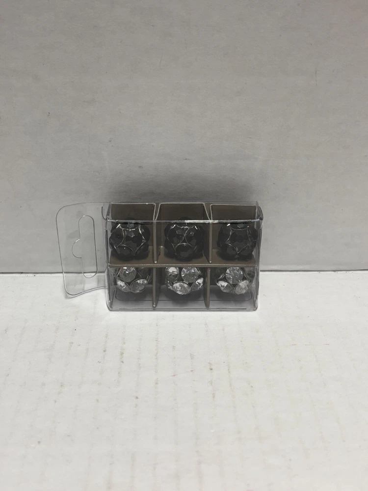 Pier 1 Imports Magnets Set of 6 features black and silver tone geometric designs. Handmade and painted in China, this set includes small magnets with a colorblock pattern. The set is original and designed for all occasions.
