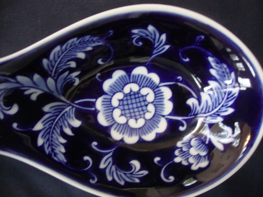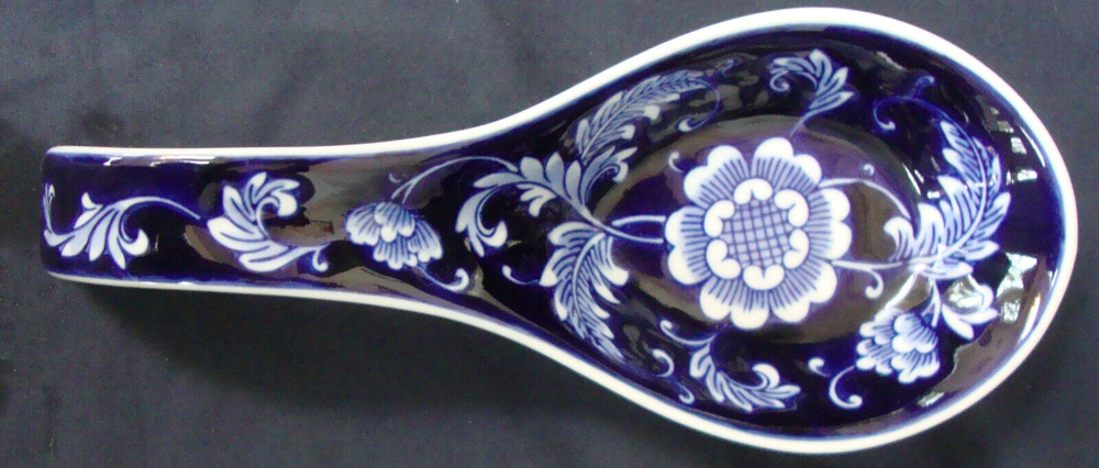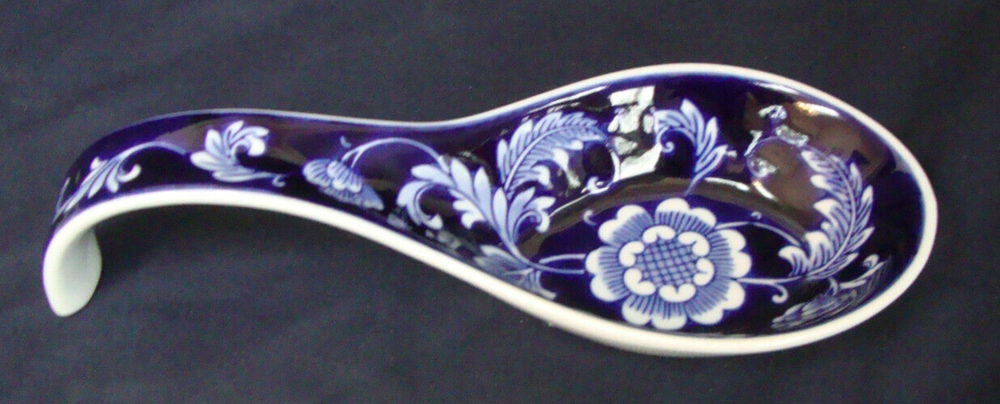 Pier 1 Imports Mandarin Cobalt Blue And White Spoon Rest SIZE: 9" long x 3 3/4" and about 2" tall at tallest point. READ CONDITION: No chips or cracks. Overall, great preowned condition....