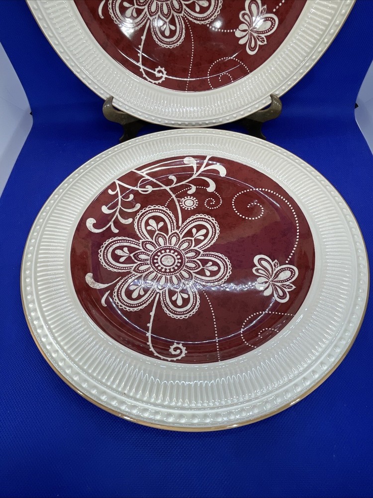 Elevate your dining experience with the Pier 1 Maribeth set of 2 Dinner Plates, a perfect blend of elegance and function. Sold and priced as per a set of 2. Each 11-inch plate showcases a beautiful floral pattern in a tasteful mix of red and white cream with ribbed and dots rim. A striking addition to any table setting. Crafted from durable ironstone, these plates are both attractive and practical, suitable for all occasions. The plates feature a glossy finish that enhances their contemporary style and are designed to be dishwasher safe for easy cleanup as noted on the Backstamp. Whether you're hosting a special dinner or enjoying a casual meal, these plates are sure to impress. All of the plates are in excellent condition. Extremely minimal marks appearing rarely used. Please see pics and note condition standards on this description. Thank you for visiting! Excited to sell what we know and love! Offering a legacy of quality possessions of life. We are passionate about discriminating tastes, wonderful family times, plus special events and occasions. Our background has been the love of memorable gatherings with fine china, dinnerware, and flatware which we know as tableware! We marvel at the artistry, skill in craftsmanship and gorgeous designs. We think of Items worthy to own or even pass on for generations. Enjoy your purchase! We are working hard to provide vivid professional photos, describe items as we would want to know if we were the buyer, and work to offer what passes our inspection. For instance, we check for defects such as cracks, chips, crazing, micro-crazing (what is micro-crazing?…in dishware…crazing not seen until a rinse in warm water). We check flatware for spoon edge dents, bent fork tines, or bent knife tips too. Feel free to ask questions and see all photos to supplement information provided. Our condition standards are as follows: Very Good - No chips, cracks, crazing/micro crazing, edge dents, bent tines, or tips etc. Items including antique or vintage that have age or use marks or minor imperfections as noted in pics or our description. A standard of very good and that passes our inspection. Excellent - No defects. No chips, cracks, crazing/micro crazing etc. No edge dents, bent tines or tips etc. An excellent cared for piece and possibly faint wear or minor wear if any including antique/vintage as noted in pics or description. A standard of near mint. Pristine Mint - No defects as noted in pics or description. No chips, cracks, crazing/micro crazing. No edge dents, bent tines or tips etc. as noted in pics or description. A superior cared for piece including vintage/antique, rarely used, unused, or new. We list top quality items in the best condition. We absolutely care about our customer satisfaction with every purchase. Positive feedback is appreciated and thank you for your time in doing this. Take Note: *We take pride in packing and shipping to quality pack your items to arrive in excellent shape. We select USPS Ground Advantage shipping to help our buyers save on shipping costs. This expanded service will arrive well within eBay shipping window. Please DOUBLE CHECK before ordering that your “ship to” address is the way you want it! *All our fine tableware items are washed and cleaned before listing so what you see in the pics is the representation at its best *We are committed to an awesome customer experience. Thank you again for your positive feedback and know we appreciate your decision to buy from us.