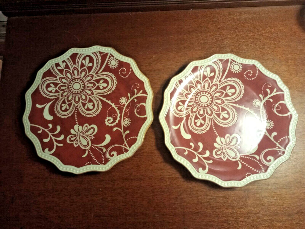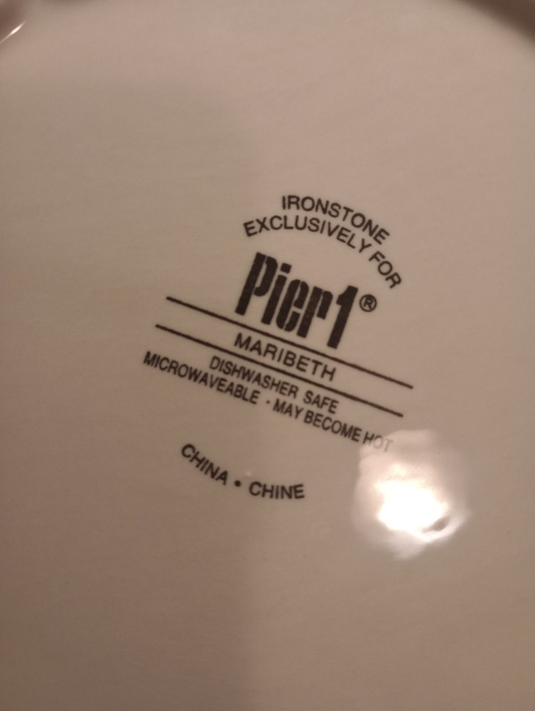 This Pier 1 Imports Maribeth Salad Plate set includes two 8.75" round plates in a classic floral design. Made of Ironstone and Stoneware, these vintage plates are microwave and dishwasher safe. The glossy finish adds a touch of elegance to any occasion. Made in China in the early 21st century, this set is part of the Maribeth product line. Please note that one plate has a tiny nick on the edge that has been touched up (shown in last picture). Please look at pictures as they are part of the description. Most china I sell is used, vintage, brands and patterns that are sometimes discontinued and is not in brand new condition, not mint or near mint unless otherwise specified. It may have scratches, marks, crazing, glaze flaws, trim wear, stains and general wear. If there are any chips or cracks however, they will be pointed out and shown in pictures. Some items we sell have general wear consistent with age and other items do not show their age nearly as much. If you are expecting brand new china , please do not purchase . I use recycled packaging to ship with. I sometimes use used clothing that has been washed and dried as packaging. It works great to avoid shipping damages . If you have a problem with this, please let me know before shipping. Please contact us directly for any questions, concerns or issues with condition , shipper/carrier delays, etc. and we will work to resolve . Opening a case will only delay our ability to quickly resolve any issues you might have. We strive for 100% customer satisfaction and have an excellent track record . Purchase with confidence. For USA buyers outside the continental USA there may be an additional cost for shipping. Please contact us for the estimated shipping cost. For international buyers our estimated shipping cost is to EBAY's National Shipping Center on the American east coast. EBAY will provide you the additional cost to ship to your location. We sell "used" items in most cases, sometimes new. There are however some items manufactured in previous years that were never used. If such an item is in excellent condition and still has an original price tag, original packaging and in some cases the original box we will show it as a new item but describe it as "new old stock" . We obtain our items through estate sales, storage sales, individuals, auctions and various other means . We sometimes do not know the history of the items we obtain as to how it was stored, who previously owned it, etc. Items are generally unique but we do buy multiples in some cases. We do research every item but are not experts on every item obtained. We do our best to describe each item accurately. USED CHINA AND DINNERWARE HAS NOT BEEN THOROUGHLY WASHED. PLEASE WASH BEFORE USING. NOTE: I describe and post photos of my items as best as possible and do not try to represent myself as an expert on anything that I sell . I am an honest seller and if I see a flaw, I will point it out and try to post a photo for your review and consideration. Used items are not perfect, not mint or near mint and can have scratches, marks, crazing, glaze flaws, trim wear, stains and general wear. Some items we sell have general wear consistent with age and other items do not show their age nearly as much. Please review our pictures as they are an important part of our condition description. If you receive an item that is damaged in some way let us know right away as shippers can be very rough on items shipped. Depending on the type of item we try to "double box" sensitive items to prevent damage. In many cases carefully wrapping the item in bubble wrap or other wrapping is enough protection . IF ANY SHIPPING DAMAGE OCCURS WHEN MULITIPLE ITEMS ARE SHIPPED TOGETHER, INCLUDING SETS, INSURANCE ONLY PAYS FOR THE DAMAGED ITEM ONLY.. NOT THE ENTIRE SET. YOU WILL ONLY BE REFUNDED FOR THE DAMAGED PIECE ONLY. THE AMOUNT OF REFUND WILL BE DETERMINED BY DIVIDING THE NUMBER OF PIECES SHIPPED BY THE SELLING PRICE. REFUND WILL NOT BE BASED ON SIZE OF THE DAMAGED ITEM . I ship in recycled packaging when possible to reduce waste. If there is a problem, please contact me before leaving feedback.