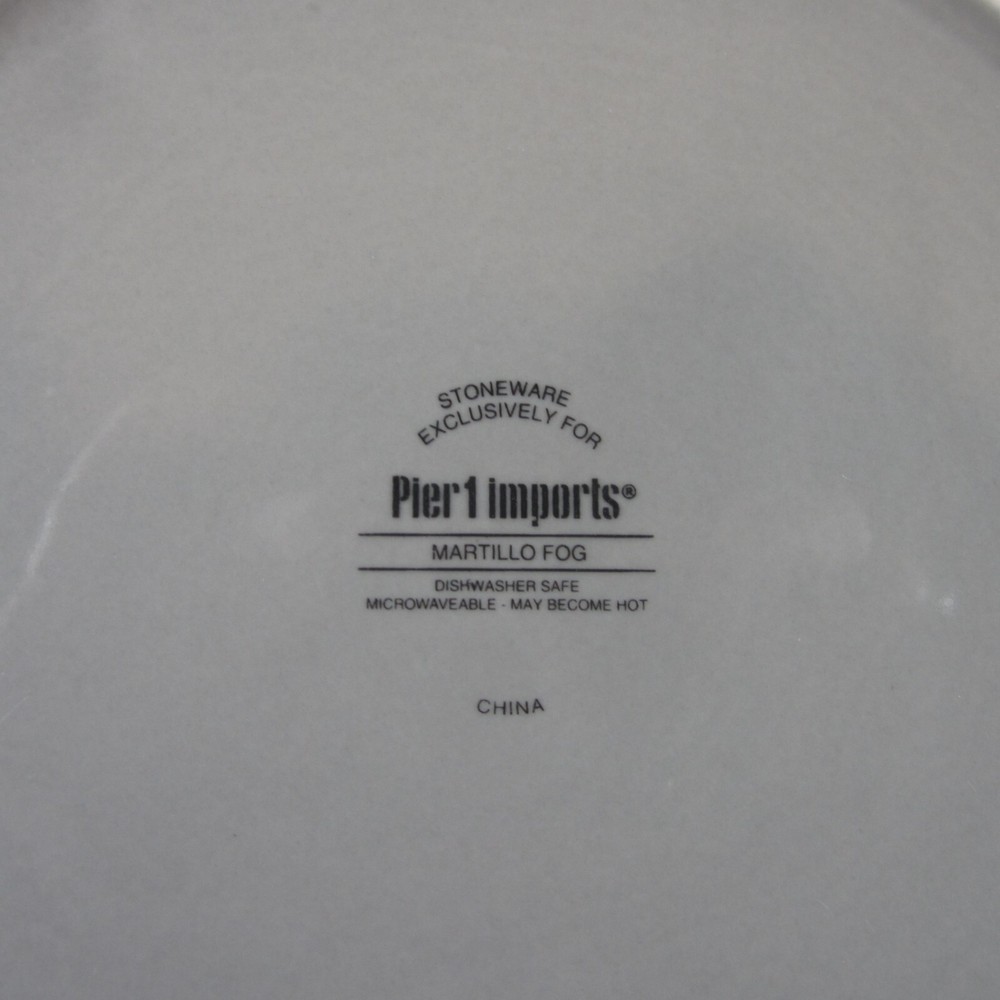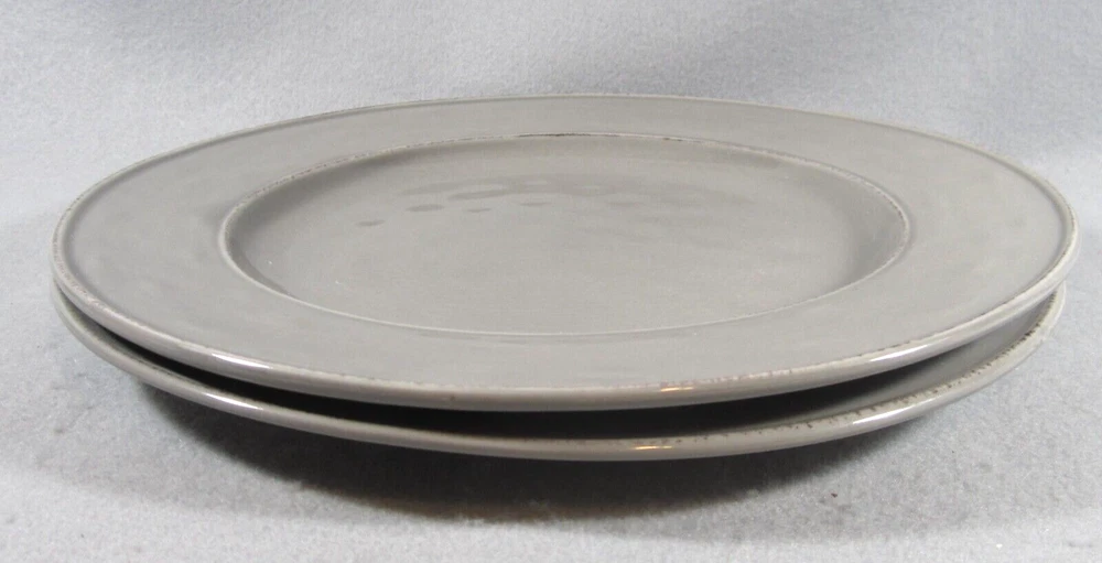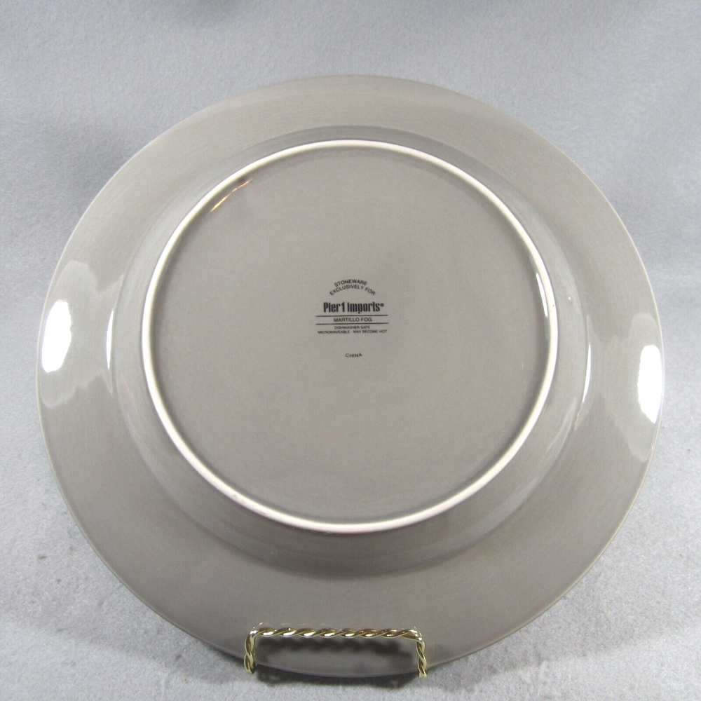 Pier 1 Imports Martillo Fog Gray Hammered Texture Set of 2 Dinner Plates 10 7/8" Price includes 2 dinner plates that are 10 7/8" in diameter. Excellent condition. No chips, cracks, crazing or repairs. Very little utensil wear. See pictures. Beautiful plates! See my listing for Martillo Fog Gray salad plates! Quick shipping. Thanks, Gail
