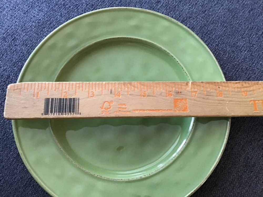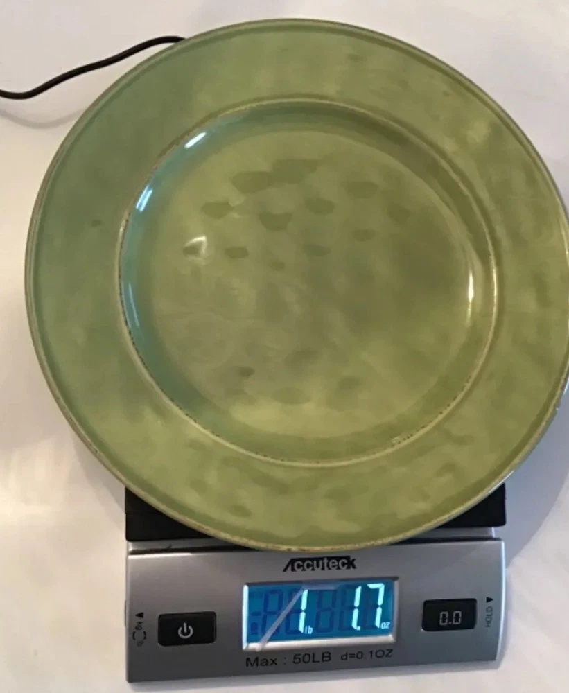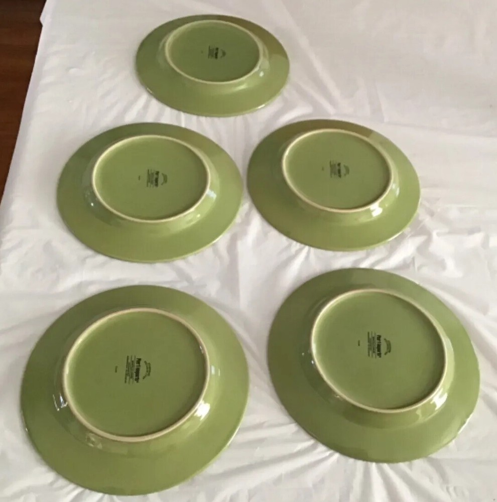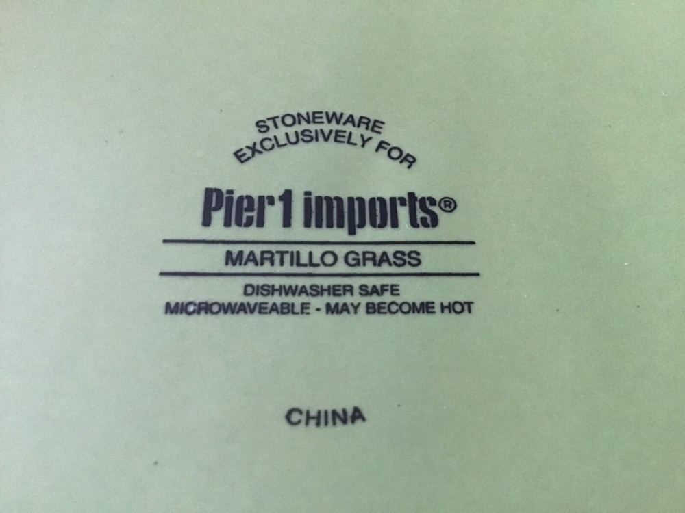 Set of 5 Pier 1 Imports Martillo Grass Stonewear Salad Plates about 8 1/2 inches in diameter. Slight wear from use . No chips. Dishwasher and microwave safe. Original owner. Weigh about 1 pound 1.7 ounces each.