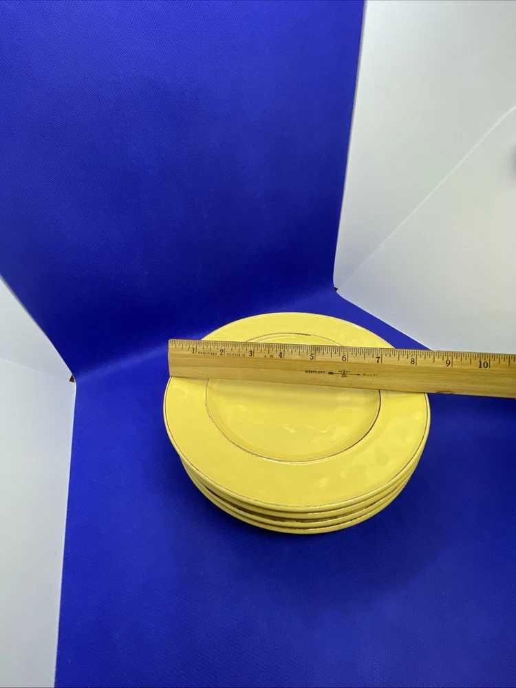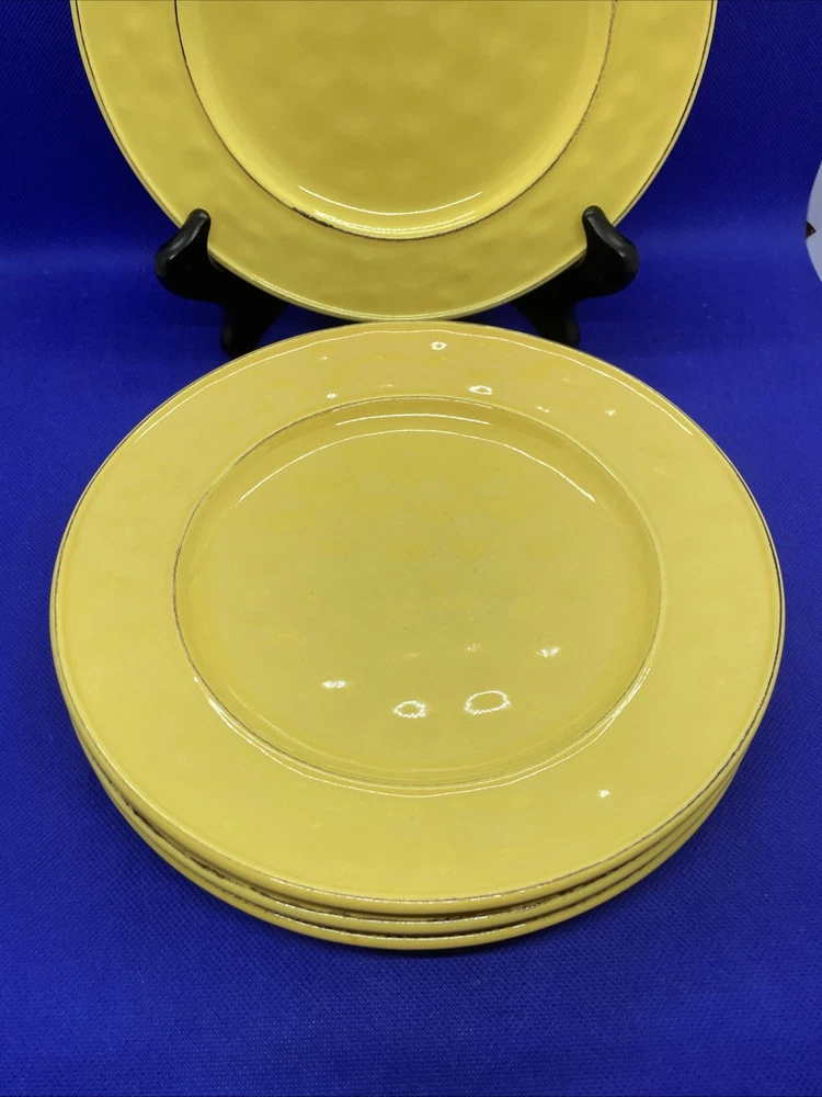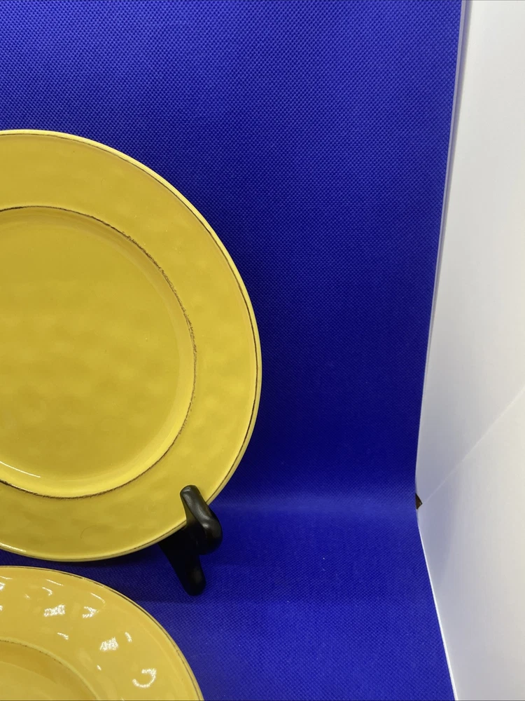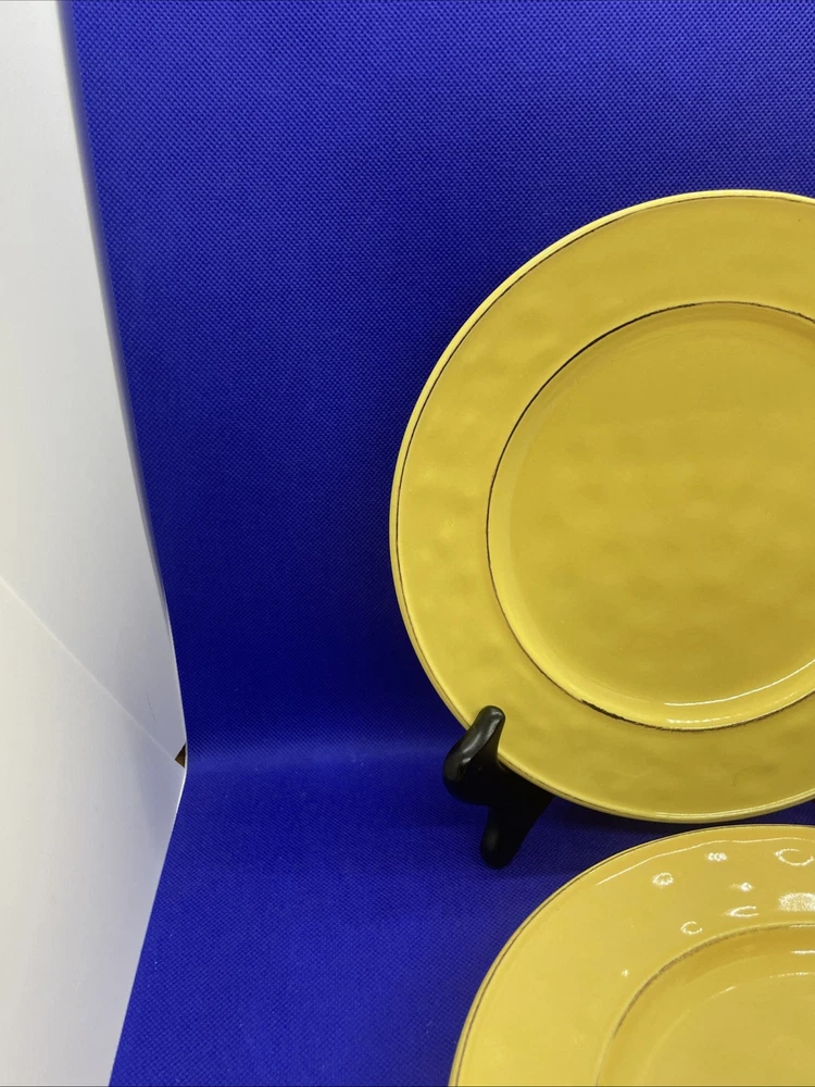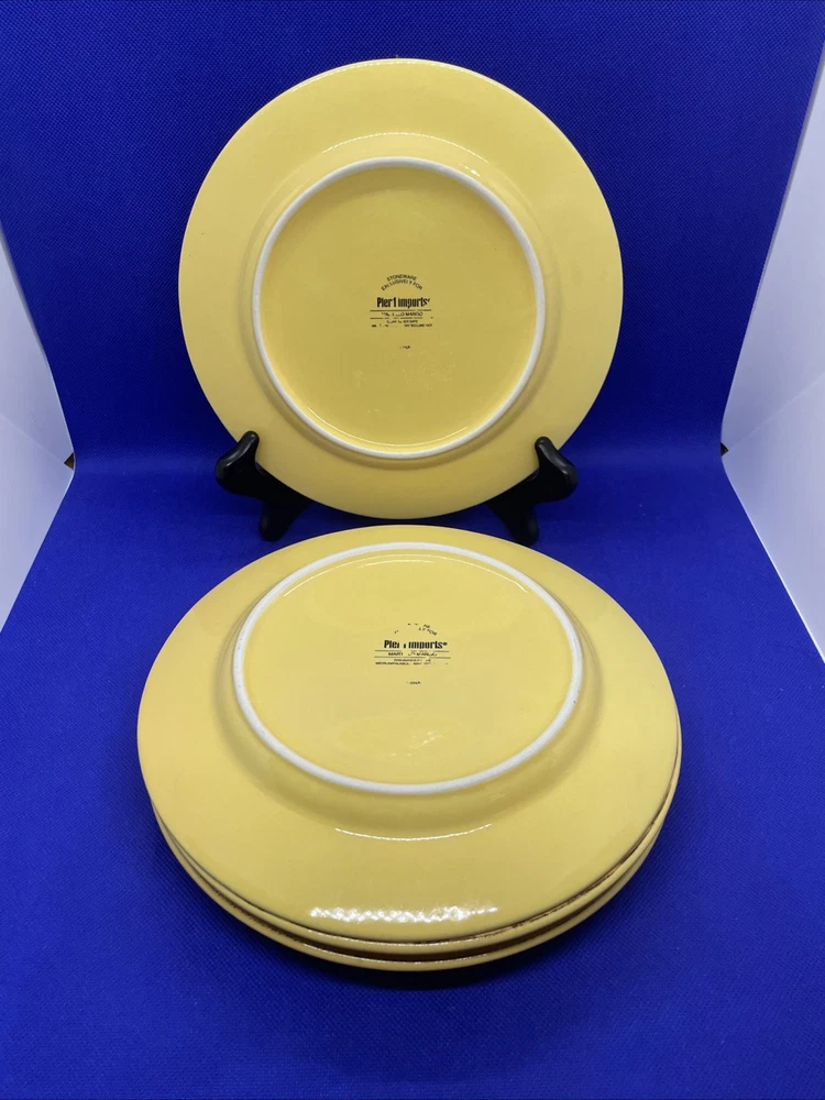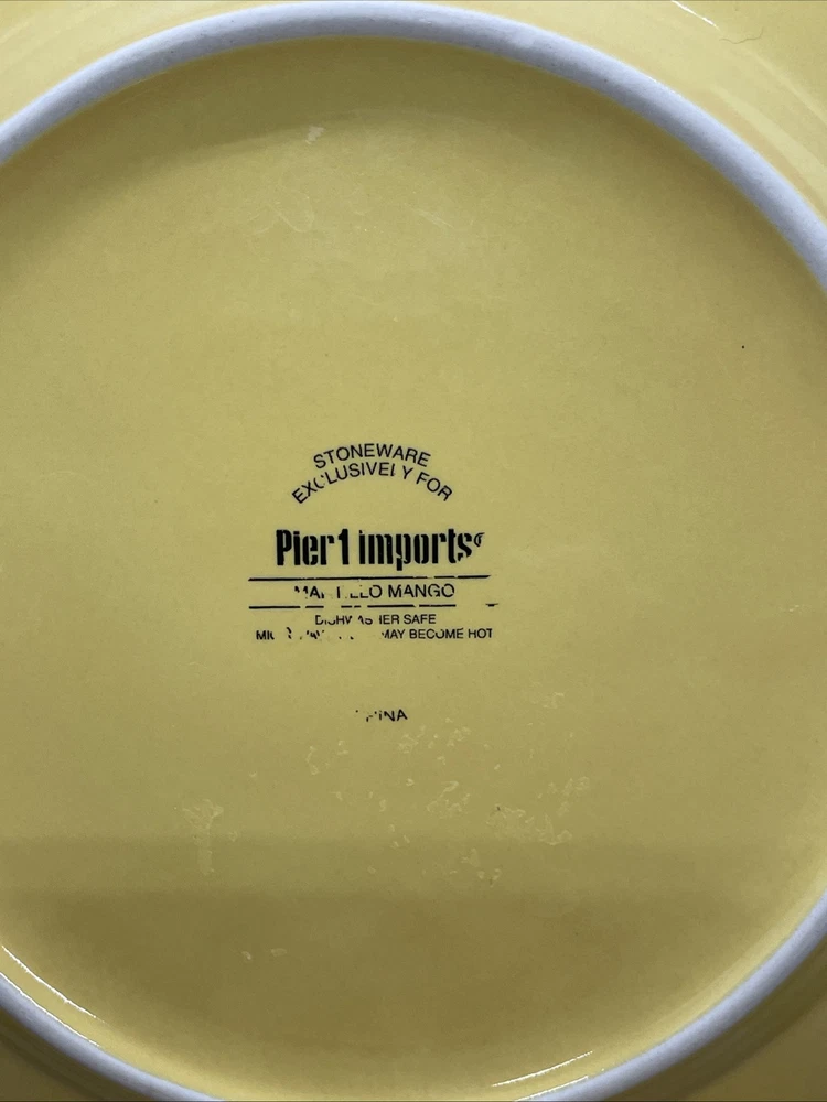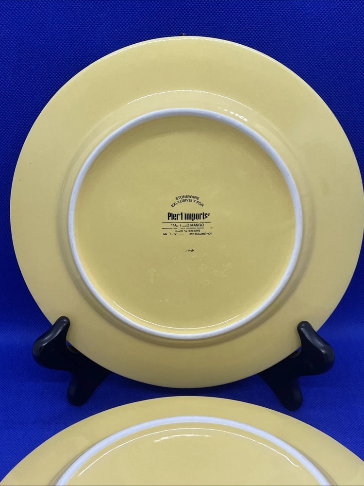 Add a touch of the tropics to your table with this set of four Pier 1 Imports Martillo Mango salad plates. Made of sturdy stoneware, these plates feature a glossy finish and a vibrant yellow mango pattern that will bring a cheerful pop of color to any meal. Each plate measures 8 1/2 inches in diameter and is dishwasher safe for easy cleanup. Whether you're hosting a summer barbecue or enjoying a quiet dinner at home dreaming of your tropical or Caribbean vacation these plates are perfect for any occasion. The plates are in excellent condition overall! Some fade on the backstamps. They appear never or rarely used on the fronts. Please see pics and note condition standards in this description. Thank you for visiting! Excited to sell what we know and love! Offering a legacy of quality possessions of life. We are passionate about discriminating tastes, wonderful family times, plus special events and occasions. Our background has been the love of memorable gatherings with fine china, dinnerware, and flatware which we know as tableware! We marvel at the artistry, skill in craftsmanship and gorgeous designs. We think of Items worthy to own or even pass on for generations. Enjoy your purchase! We are working hard to provide vivid professional photos, describe items as we would want to know if we were the buyer, and work to offer what passes our inspection. For instance, we check for defects such as cracks, chips, crazing. We check flatware for spoon edge dents, bent fork tines, or bent knife tips too. Feel free to ask questions and see all photos to supplement information provided. Our condition standards are as follows: Very Good - Minor use marks present. NO damage such as NO chips, cracks or crazing, edge dents, bent tines, or tips Excellent - Very faint minor use marks present. NO damage such as NO chips, cracks, crazing or in flatware no edge dents, bent tines or tips. Near mint. Pristine Mint - NO use marks. NO damage such as NO chips, cracks, crazing, edge dents, bent tines or tips. Rarely used or new. We list top quality items in the best condition. We absolutely care about our customer satisfaction with every purchase. Positive feedback is appreciated and thank you for your time in doing this. Take Note: *We take pride in packing and shipping to quality pack your items to arrive in excellent shape. We select USPS Ground Advantage shipping to help our buyers save on shipping costs. This expanded service will arrive well within eBay shipping window. Please DOUBLE CHECK before ordering that your “ship to” address is the way you want it! *All our fine tableware items are washed and cleaned before listing so what you see in the pics is the representation at its best *We are committed to an awesome customer experience. Thank you again for your positive feedback and know we appreciate your decision to buy from us.