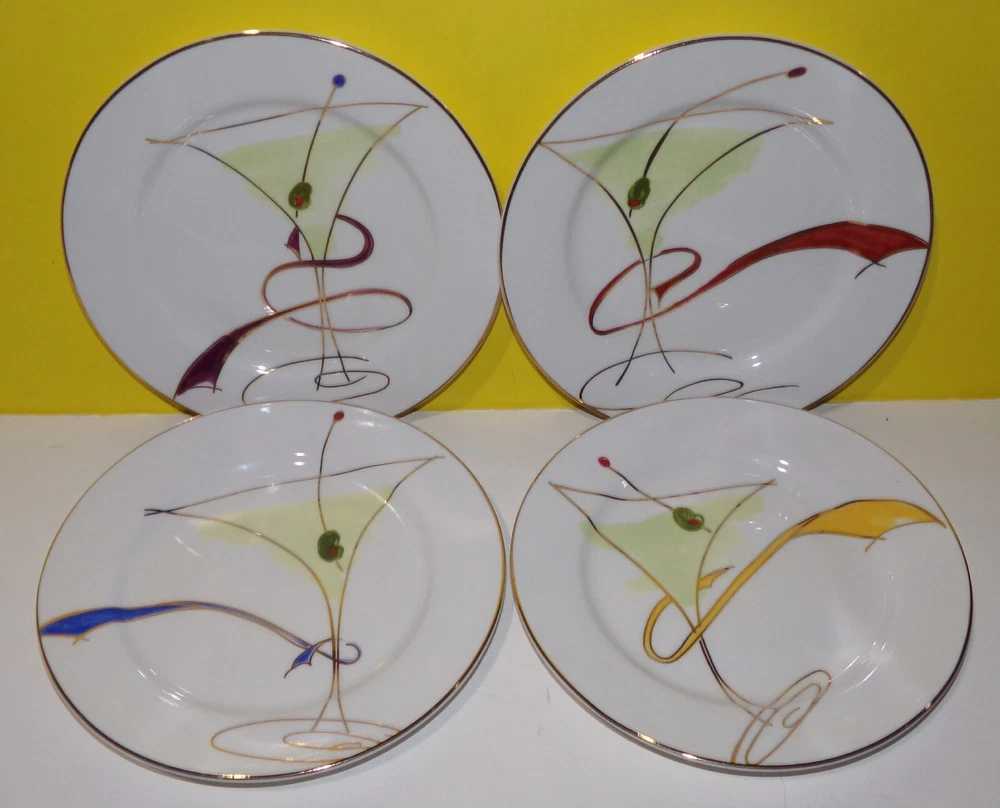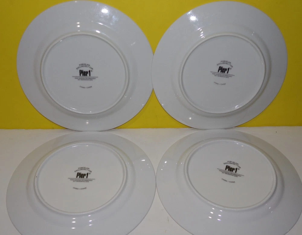 Pier 1 Imports Martini Glass Salad Dessert Appetizer Plates Porcelain Set of 4 - In fine condition, Like new with little to no use utensil marks. No chips or cracks. They Measure about 7.5" Diameter.