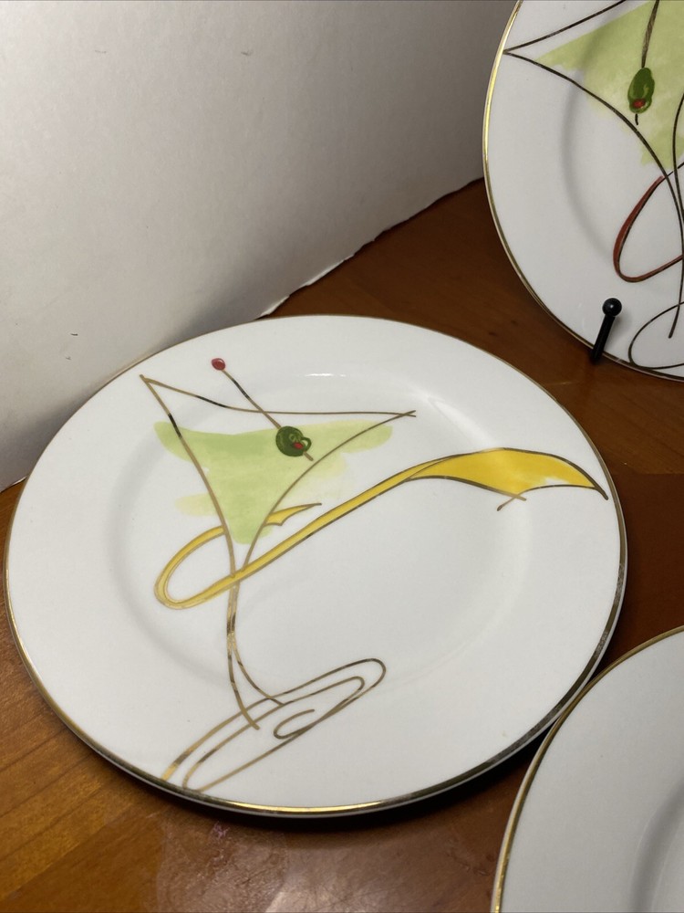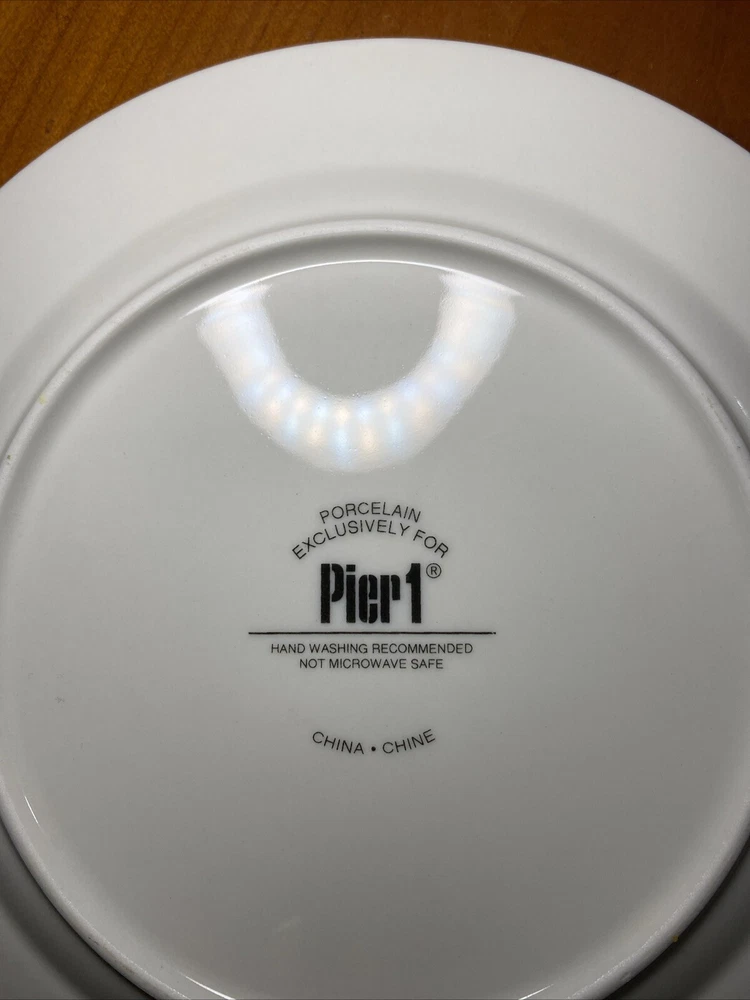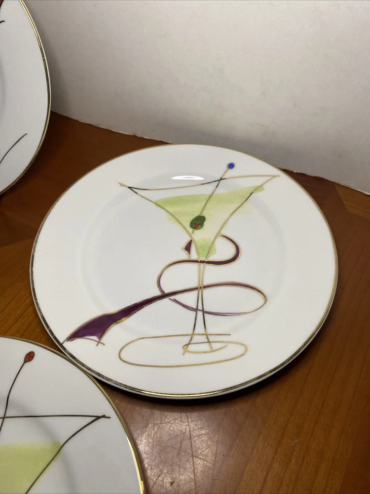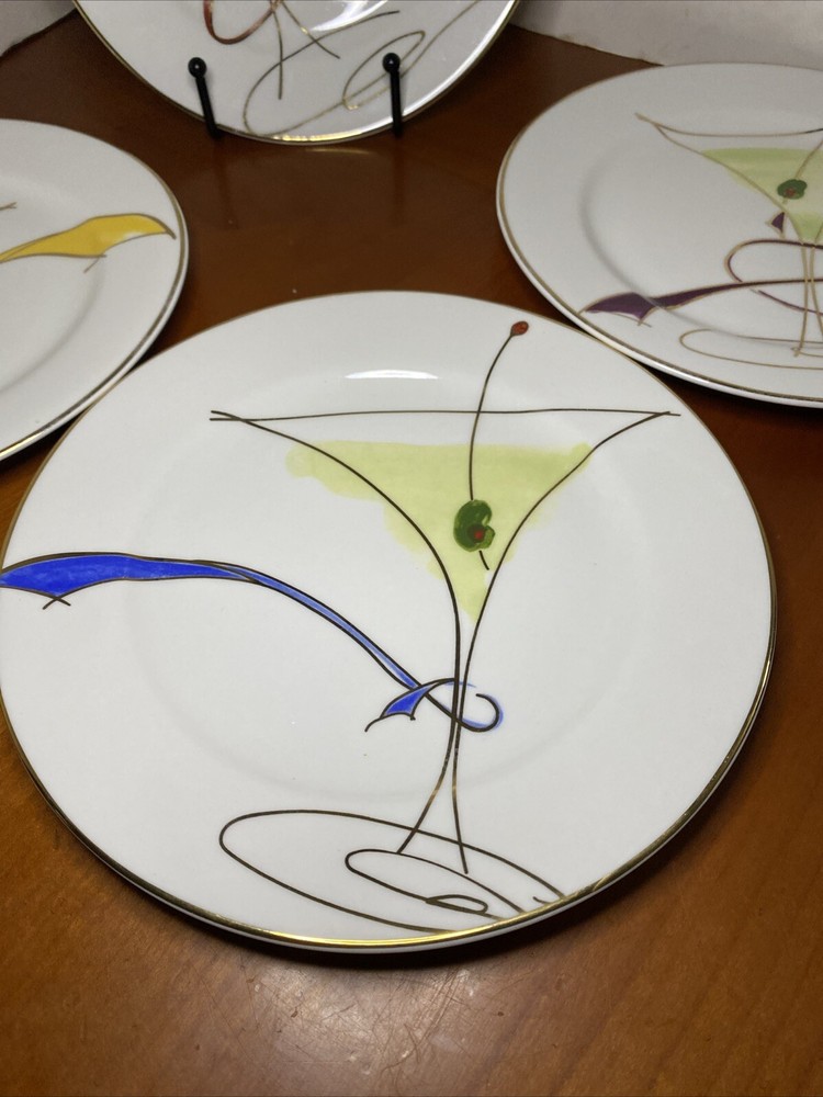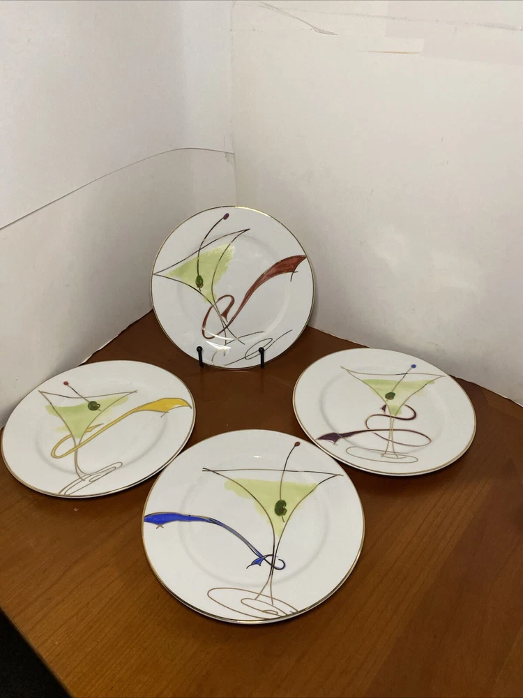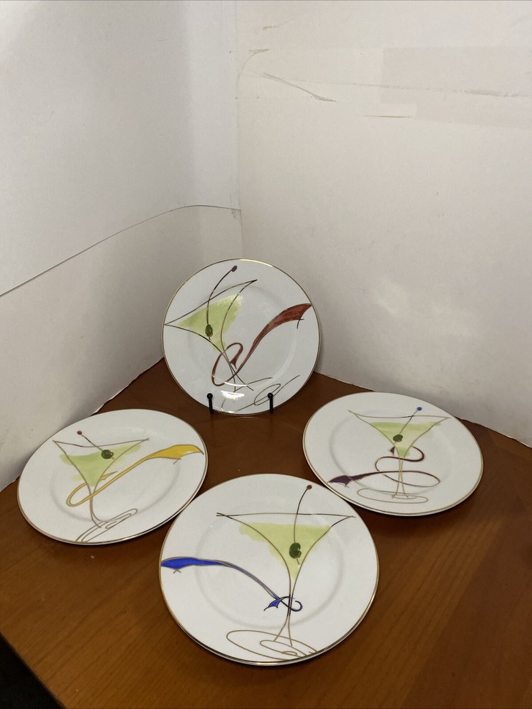 Elevate your dining experience with this set of four Pier 1 Imports Martini Glass plates. These contemporary round plates feature a glossy finish and a beautiful ballet ribbon pattern in white. Perfect for all occasions, these plates are stackable and decorative, adding a touch of sophistication to your table setting. Crafted from high-quality porcelain, these plates are hand wash only and have a plate diameter of 7.5 inches. The set includes both salad and dessert plates, making it ideal for serving a variety of dishes. These original Martini Glass plates are produced using art pottery techniques in China and are sure to impress your guests.