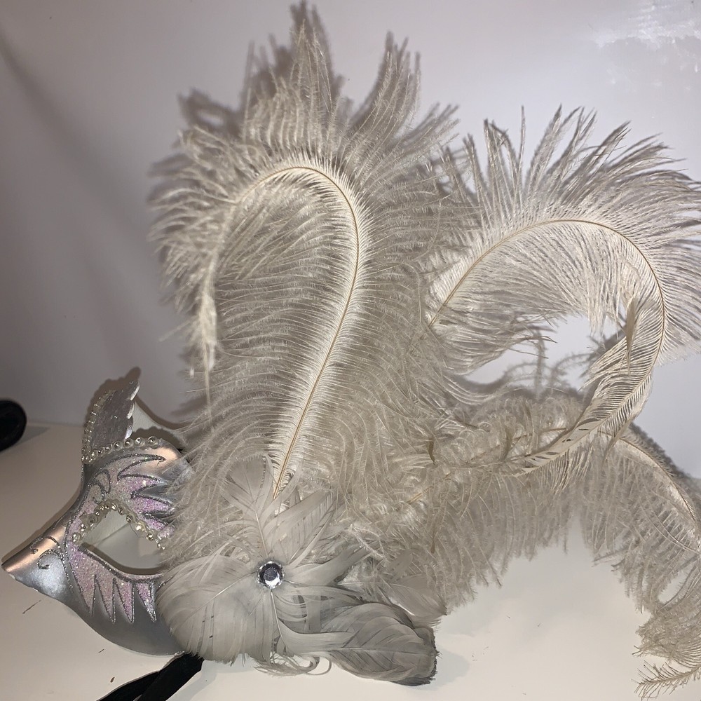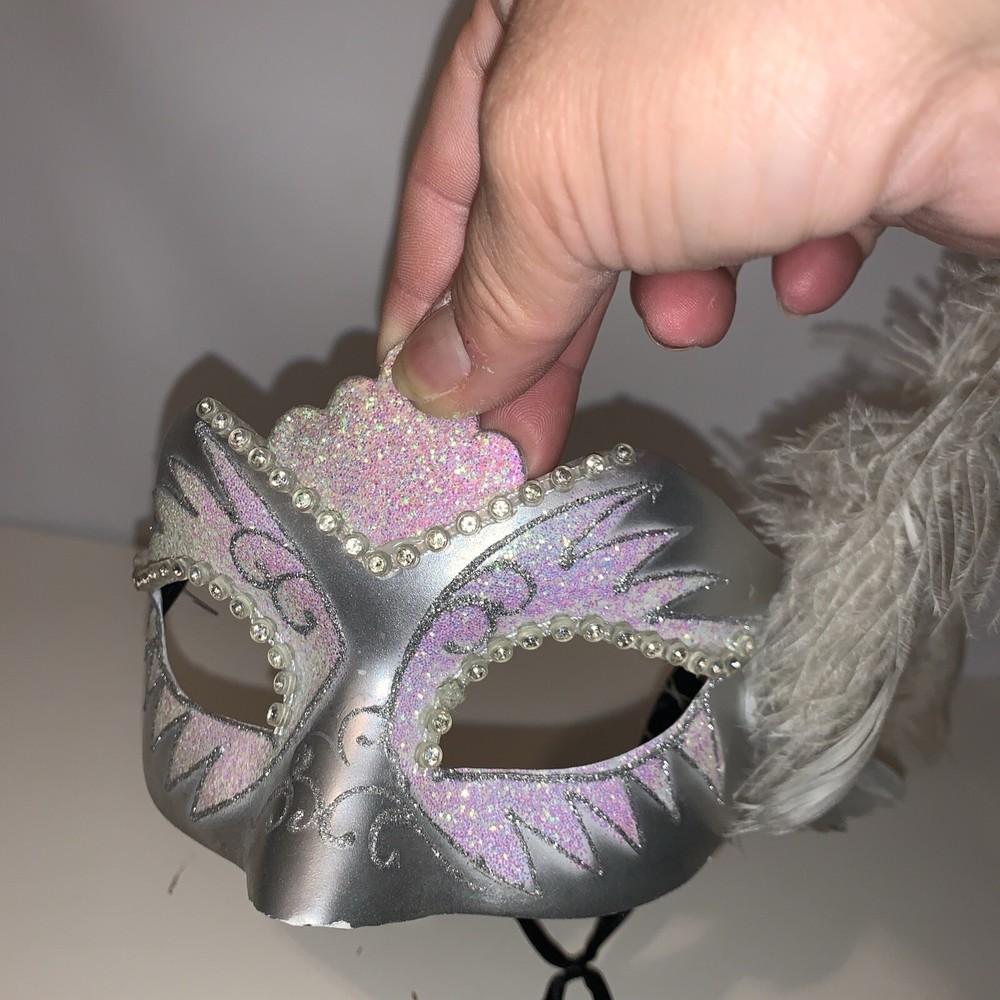Add a touch of mystery to your outfit with this stunning Pier 1 Imports Masquerade Mask. Hand-painted in Italy, this Venetian-inspired mask features intricate details such as glitter, rhinestones, and feathers. The mask form is perfect for an adult unisex fit and will complement any occasion, from a costume party to a masquerade ball. The gold, white, and silver colors, along with the Venetian theme and style, make this mask a unique and elegant addition to your accessory collection.