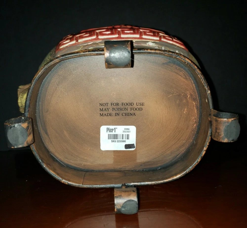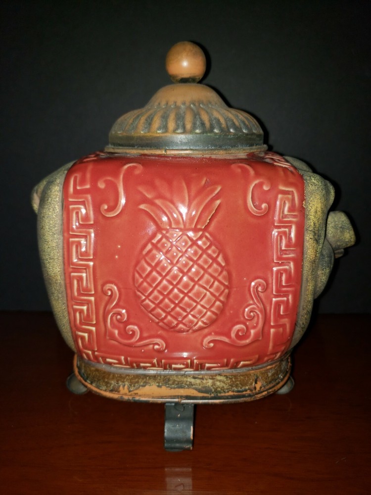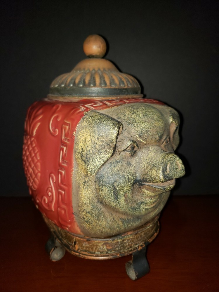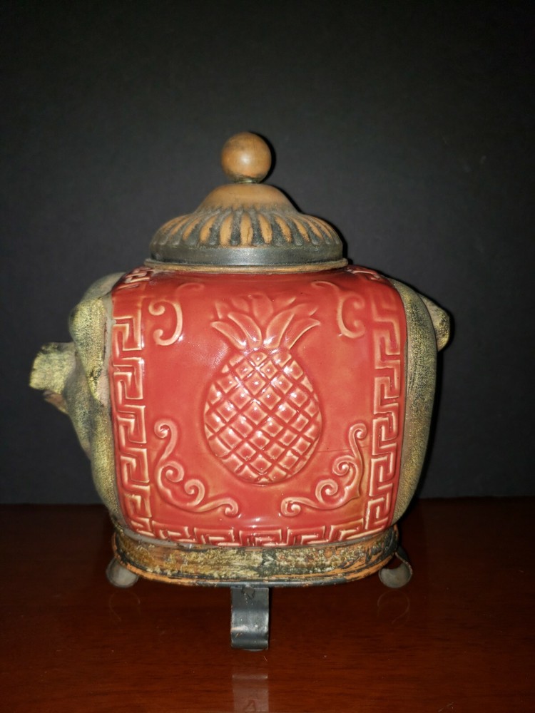 Pier 1 Imports Metal Pig w/Ceramic Asian Scroll Pineapple Design Footed Jar-EUC! DETAILS: SIZE: approx. 10 3/4" L x 8 1/4" H with lid (8" H without lid) CONDITION: Excellent pre-loved/pre-owned condition. Light scratches & rubbing on rim near base. No chips or cracks. **IMPORTANT: This item is not for food-display or non-food only" as stated on base. The item pictured is the exact one you will receive. **Please see all pics before deciding to purchase as all SALES ARE FINAL.** Buy now from a seller with 100% positive feedback & many years of customer satisfaction! All items come from a smoke-free home & are packed & shipped with care. :) Shipping is FREE by USPS Ground Advantage with tracking. Payment must be made immediately upon agreeing to purchase. I will ship on the same or next business day after payment is received. Please kindly leave me positive feedback when your item is received in good order, & I will do the same. Feedback is important to sellers so future or prospective buyers can buy with confidence. If you encounter any issues with your item, please contact me directly to resolve any problems before contacting eBay. Mahalo! Thank you for your interest in my item & have a beautiful day! :)