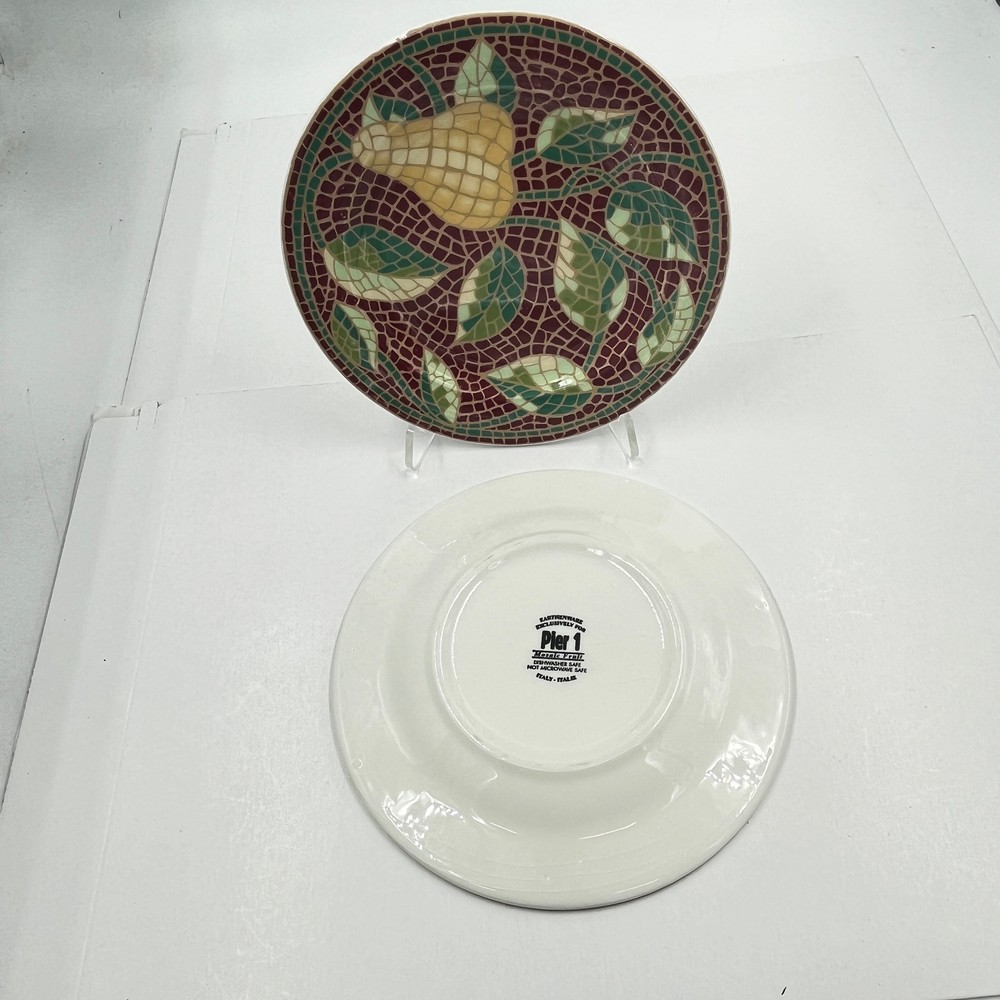 PGB Sales 100% Original High Quality Fast Shipping Pier 1 Imports Mosaic Fruit Salad / Dessert 8 1/4" Plates - Italy, 2 plates SPECIAL OFFER! 2 - Pier 1 Imports Mosaic Fruit Salad / Dessert 8 1/4" Plates - Italy Earthenware. May have some crazing No stains. Measures: Plate measures 8 1/4 in. diameter Dishwasher and microwave safe. Payment We accept payment by any of the following methods: PayPal Please pay as soon as possible after winning an auction, as that will allow us to post your item to you sooner! Shipping We offer FREE shipping on this order. Your order will be dispatched within 1 working day of receiving payment (Monday-Friday). In the very unlikely event that your item is lost or damaged during post, then WE are responsible and will issue either a full refund or replacement. Returns If you are not 100% satisfied with your purchase, you can return the product and get a full refund or exchange the product for another one, if available. You can return a product for up to 30 days from the date you purchased it. We pay for return shipping on domestic orders. Return must be done through eBay. We do not pay for return shipping on International orders. International returns are at the buyer's expense. Any product you return must be in the same condition you received it and in the original packaging. Please keep the receipt. 100% Original High Quality Fast Shipping Click here to see description PGB Sales SPECIAL OFFER! High Quality Fast Shipping 100% Original Pier 1 Imports Mosaic Fruit Salad / Dessert 8 1/4" Plates - Italy, 2 plates 2 - Pier 1 Imports Mosaic Fruit Salad / Dessert 8 1/4" Plates - Italy Earthenware. May have some crazing No stains. Measures: Plate measures 8 1/4 in. diameter Dishwasher and microwave safe. Payment We accept payment by any of the following methods: PayPal Please pay as soon as possible after winning an auction, as that will allow us to post your item to you sooner! Shipping We offer FREE shipping on this order. Your order will be dispatched within 1 working day of receiving payment (Monday-Friday). In the very unlikely event that your item is lost or damaged during post, then WE are responsible and will issue either a full refund or replacement. Returns If you are not 100% satisfied with your purchase, you can return the product and get a full refund or exchange the product for another one, if available. You can return a product for up to 30 days from the date you purchased it. We pay for return shipping on domestic orders. Return must be done through eBay. We do not pay for return shipping on International orders. International returns are at the buyer's expense. Any product you return must be in the same condition you received it and in the original packaging. Please keep the receipt. 100% Original High Quality Fast Shipping