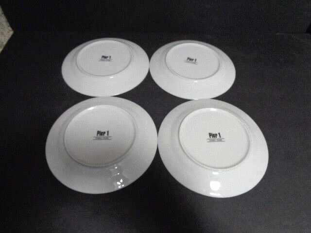 SET OF 4 PIER 1 SNOWFLAKE SALAD/DESSERT PLATES 7 1/4" ALL IN EXCELLENT PREOWNED CONDITION PLEASE SEE PHOTOS FOR BEST DESCRIPTION ANY QUESTIONS PLEASE ASK BEFORE BIDDING PAYMENT DUE UPON PURCHASE I DO NOT SHIP INTERNATIONALLY THANKS FOR STOPPING BY I APPRECIATE YOUR BUSINESS BE SURE AND CHECK OUT MY EBAY STORE "BACK PORCH BLESSINGS" FOR OTHER TREASURES